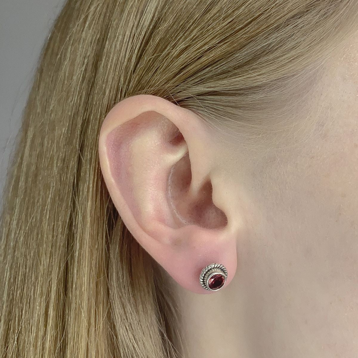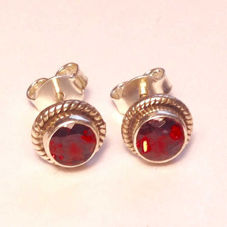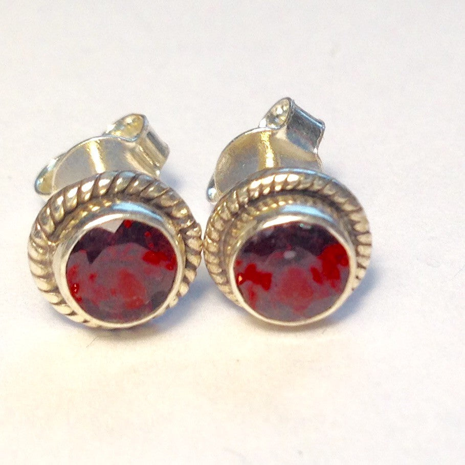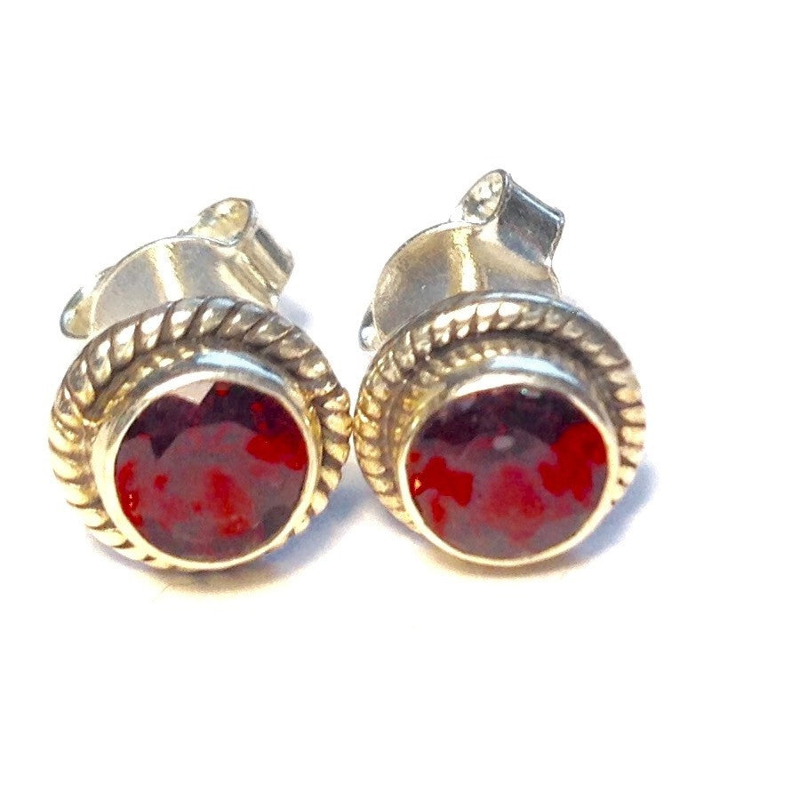 Sidabriniai apvalūs auskarai su granato akmeniu