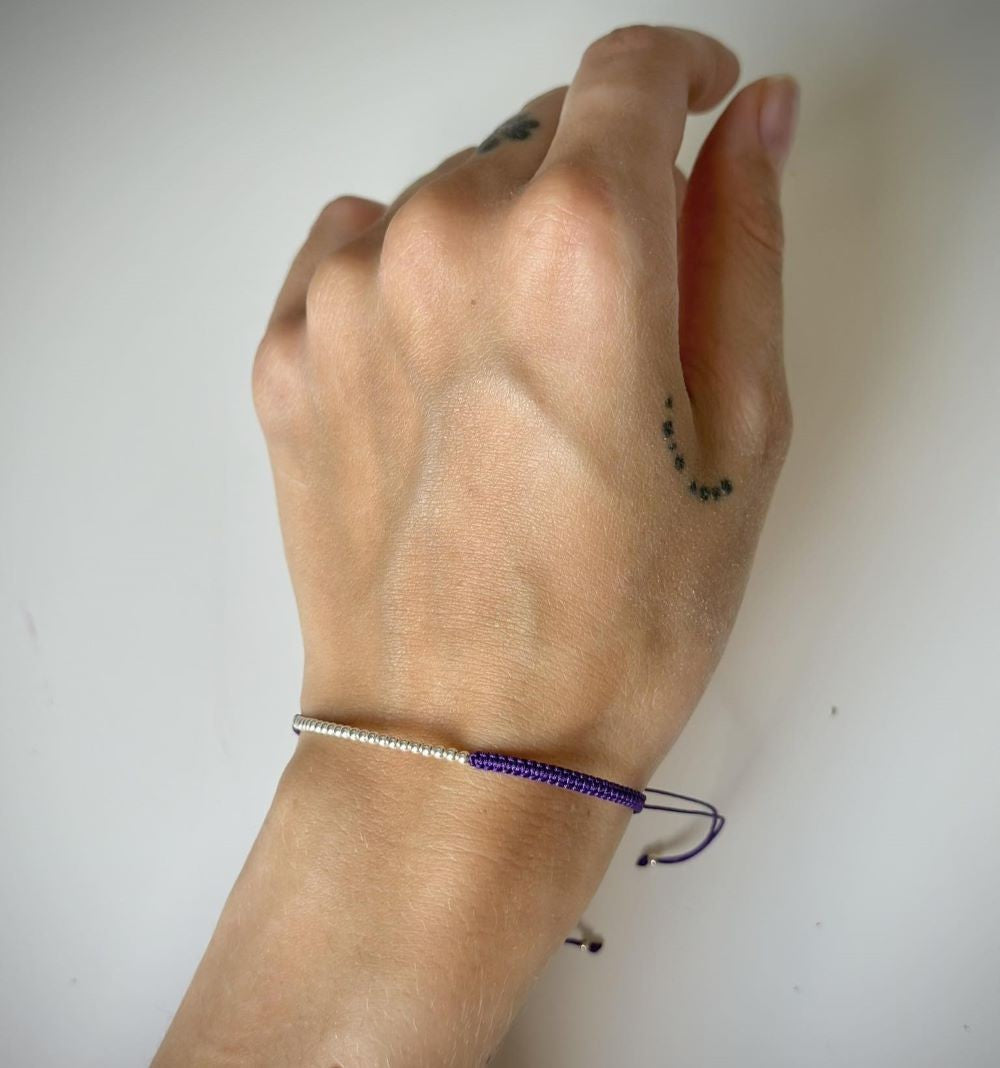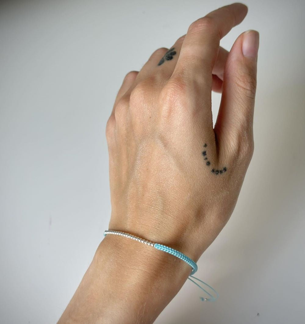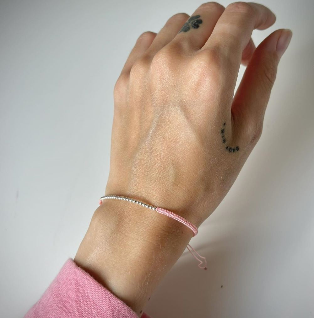 Įvairių spalvų siūlo apyrankės su sidabriniais karoliukais