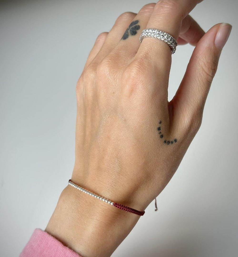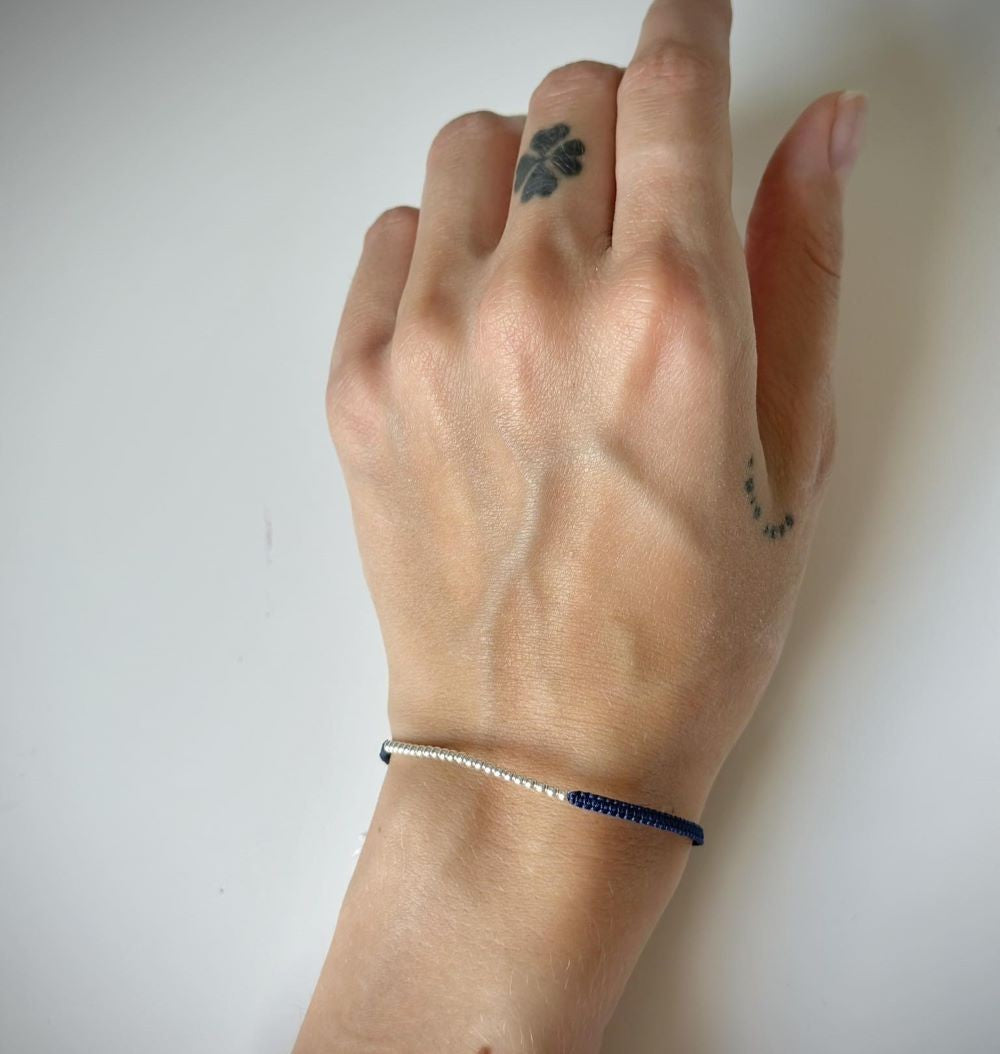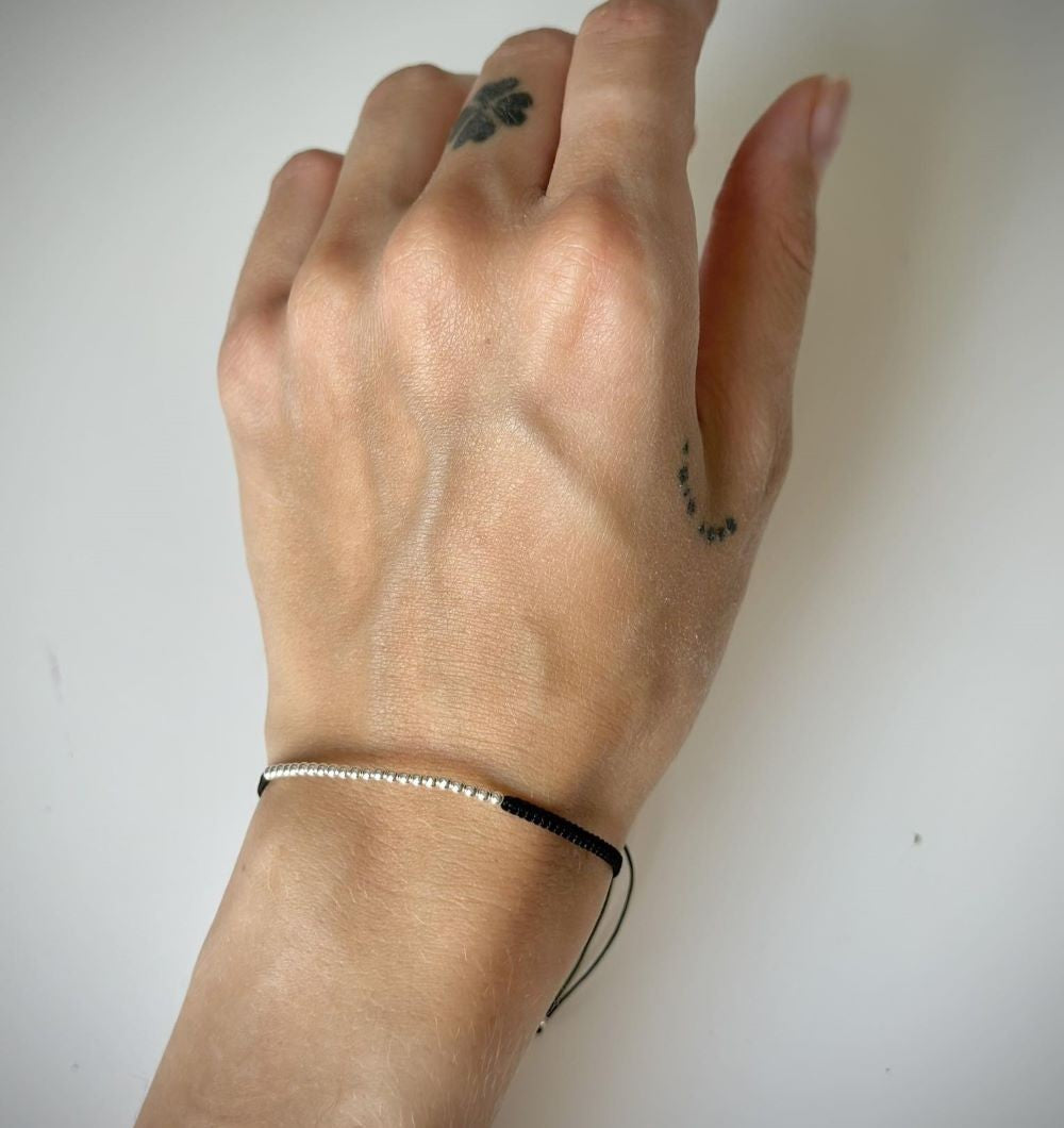 Įvairių spalvų siūlo apyrankės su sidabriniais karoliukais