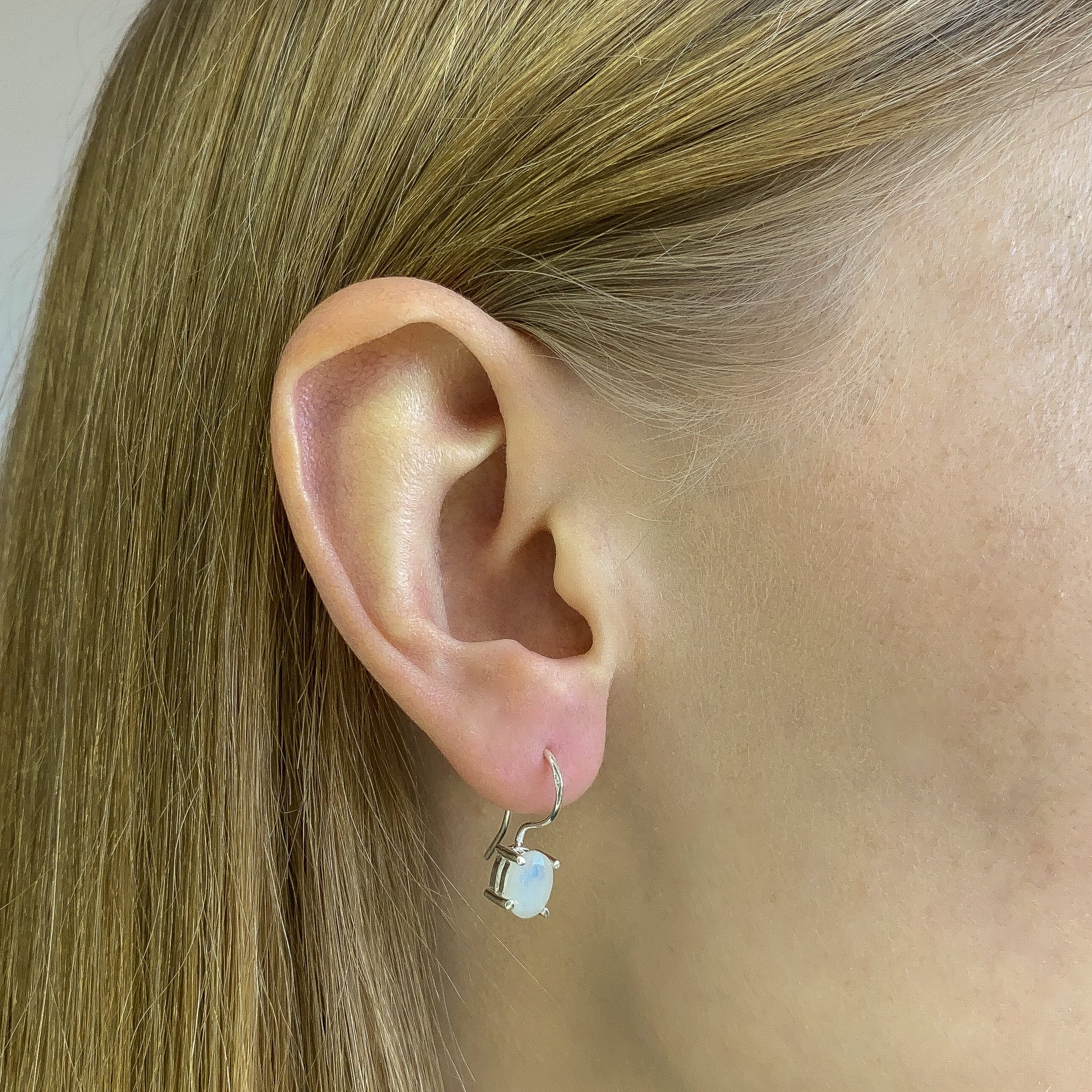 Sidabriniai auskarai su ovaliu mėnulio akmeniu