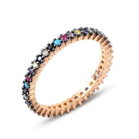 Paauksuotas 2mm sidabrinis žiedelis su spalvotu cirkoniu