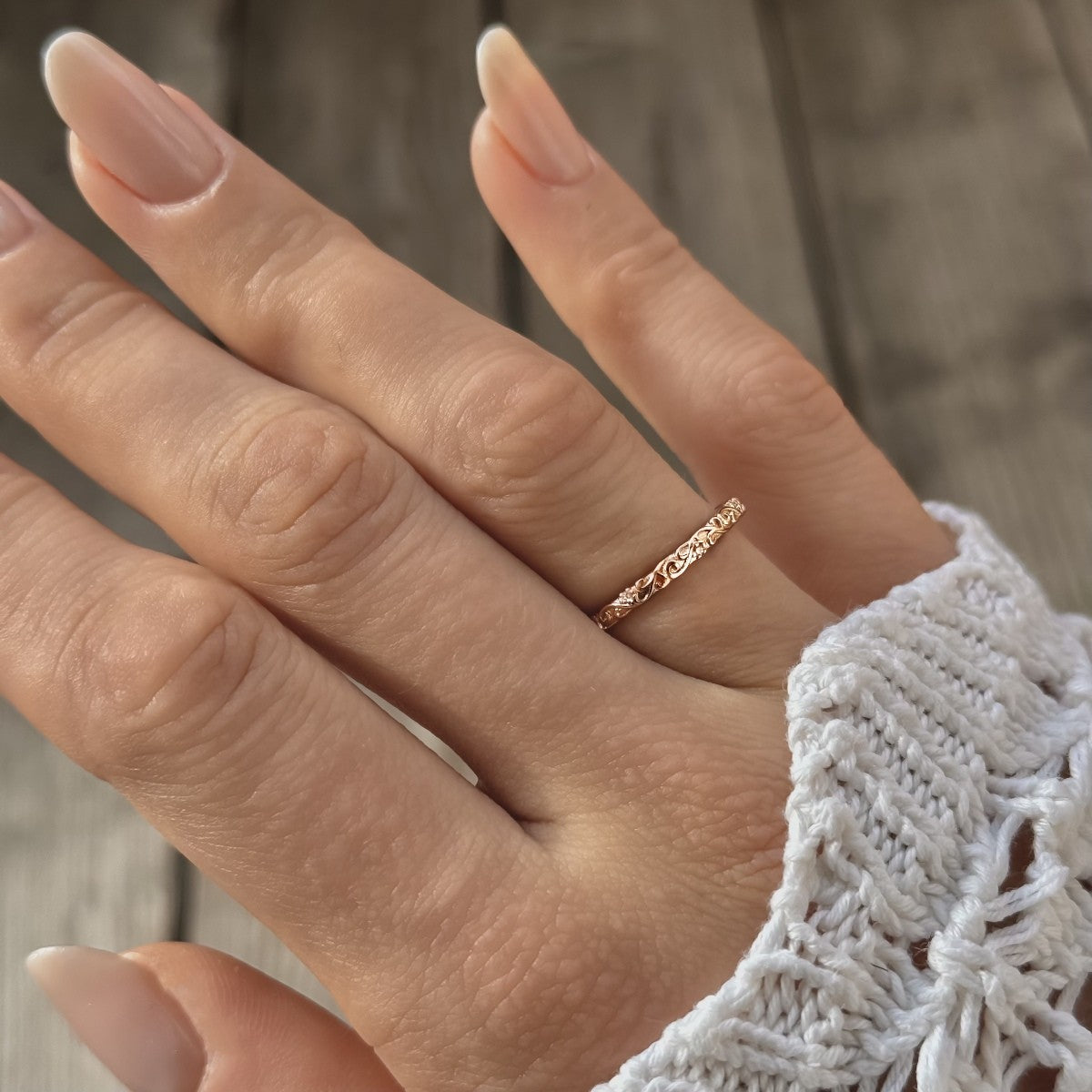 Paauksuotas ornamentuotas žiedelis su cirkoniais