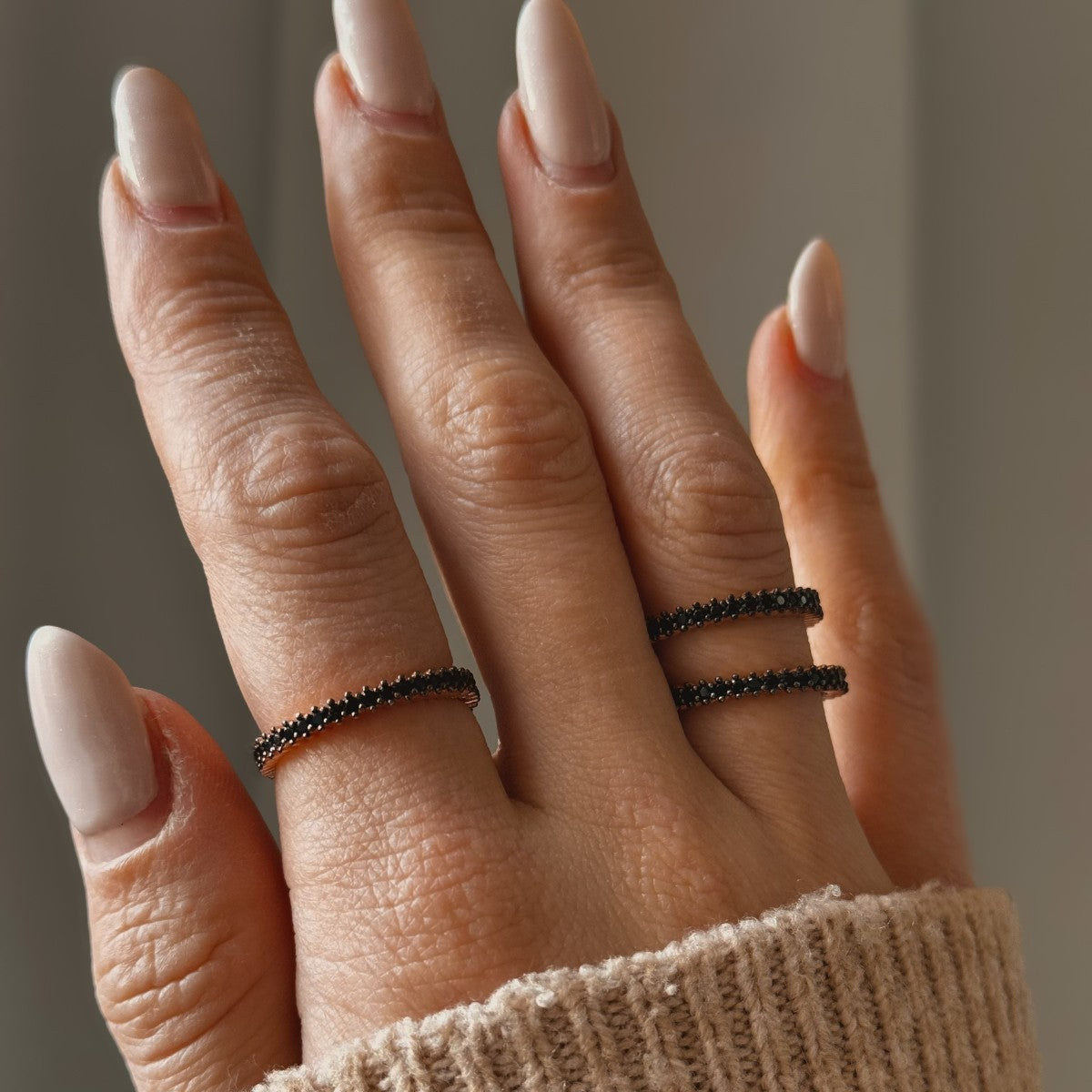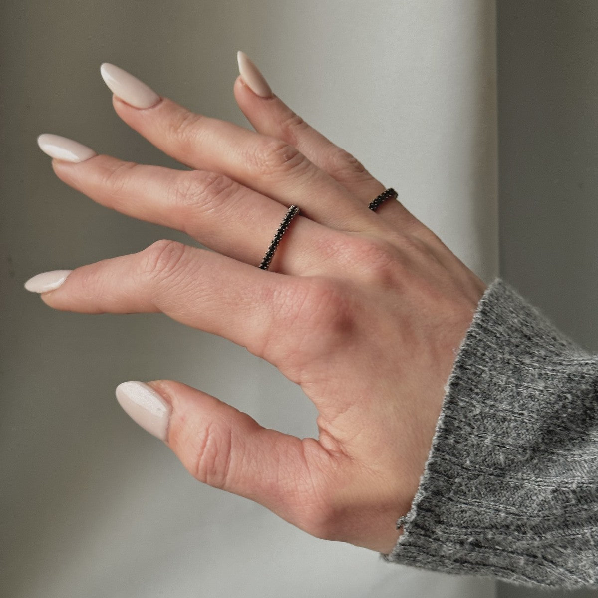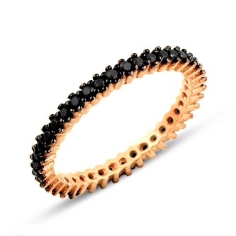 Paauksuotas sidabrinis 2mm žiedelis su juodu cirkoniu