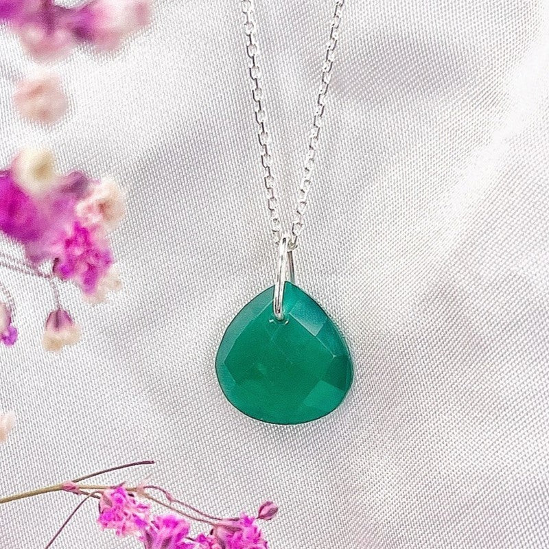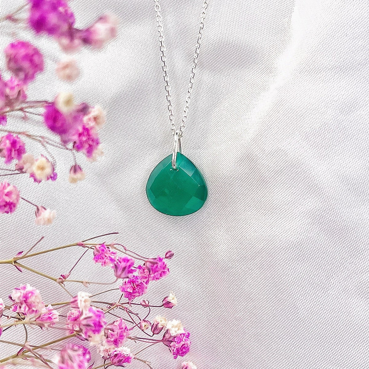 Pakabukas su žaliuoju oniksu ir grandinėle