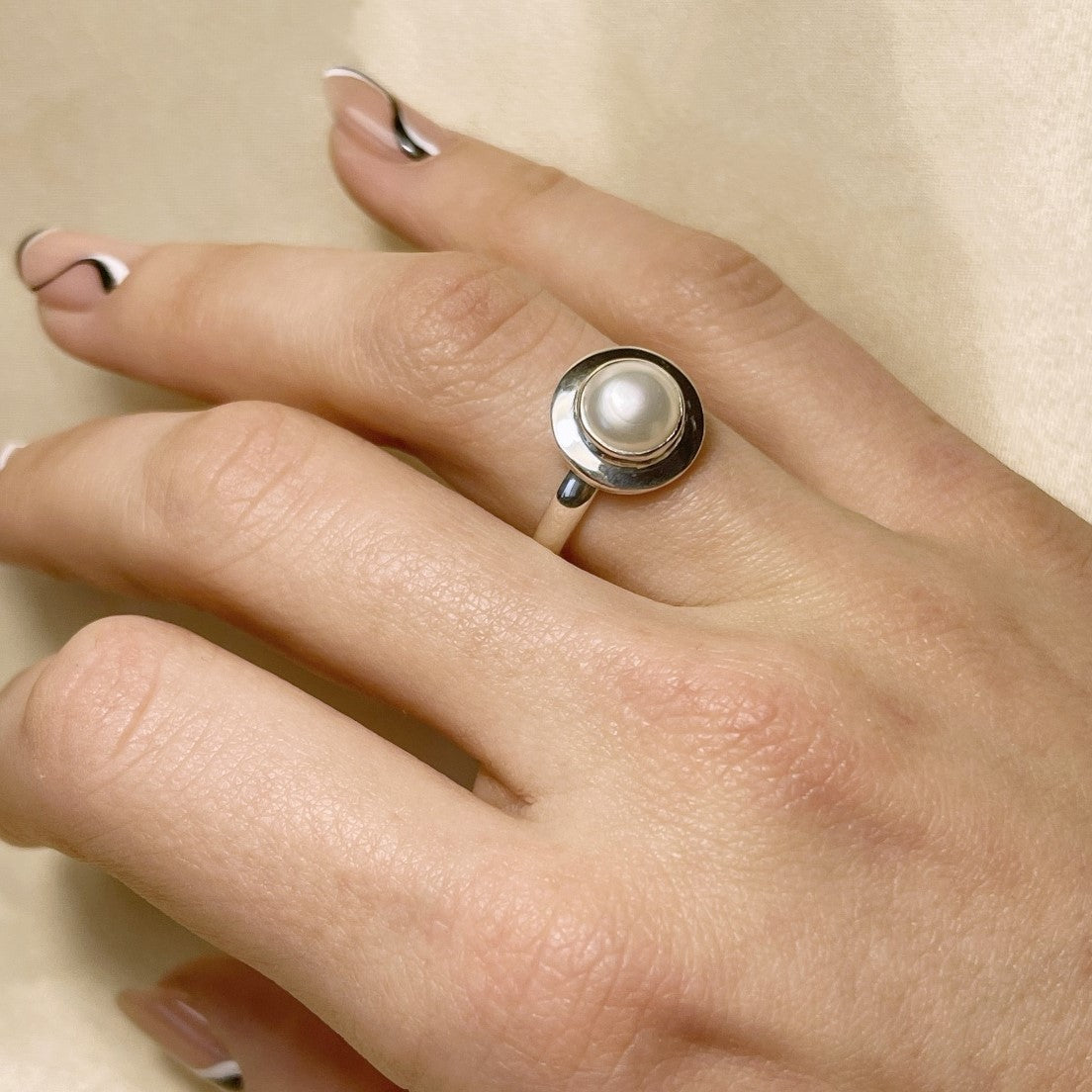 perlas ¦ sidabrinis žiedas su tikro perlo apvalia akute