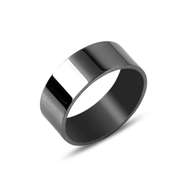 Platus 8mm sidabrinis žiedas dengtas juodu rodžiu