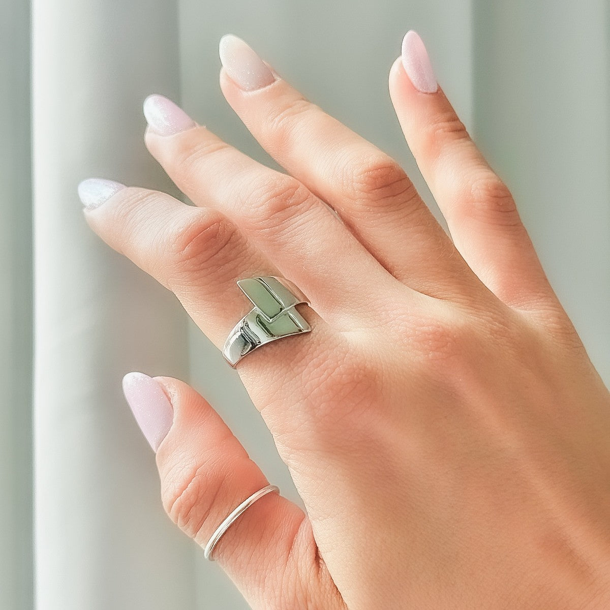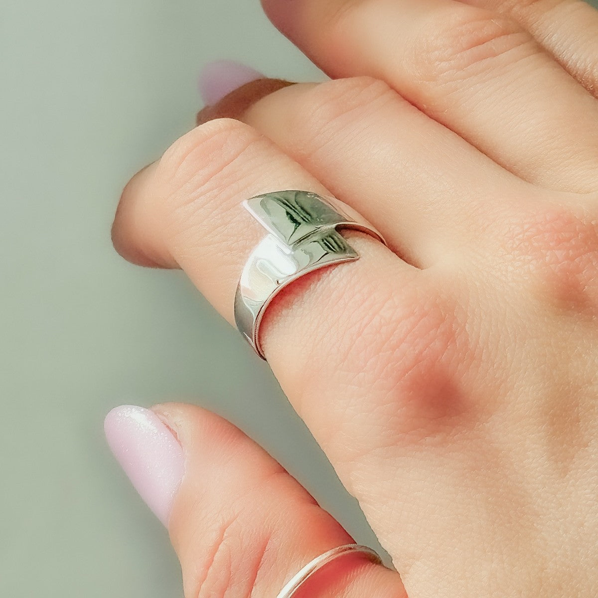 Platus sidabrinis rodžiuotas žiedas