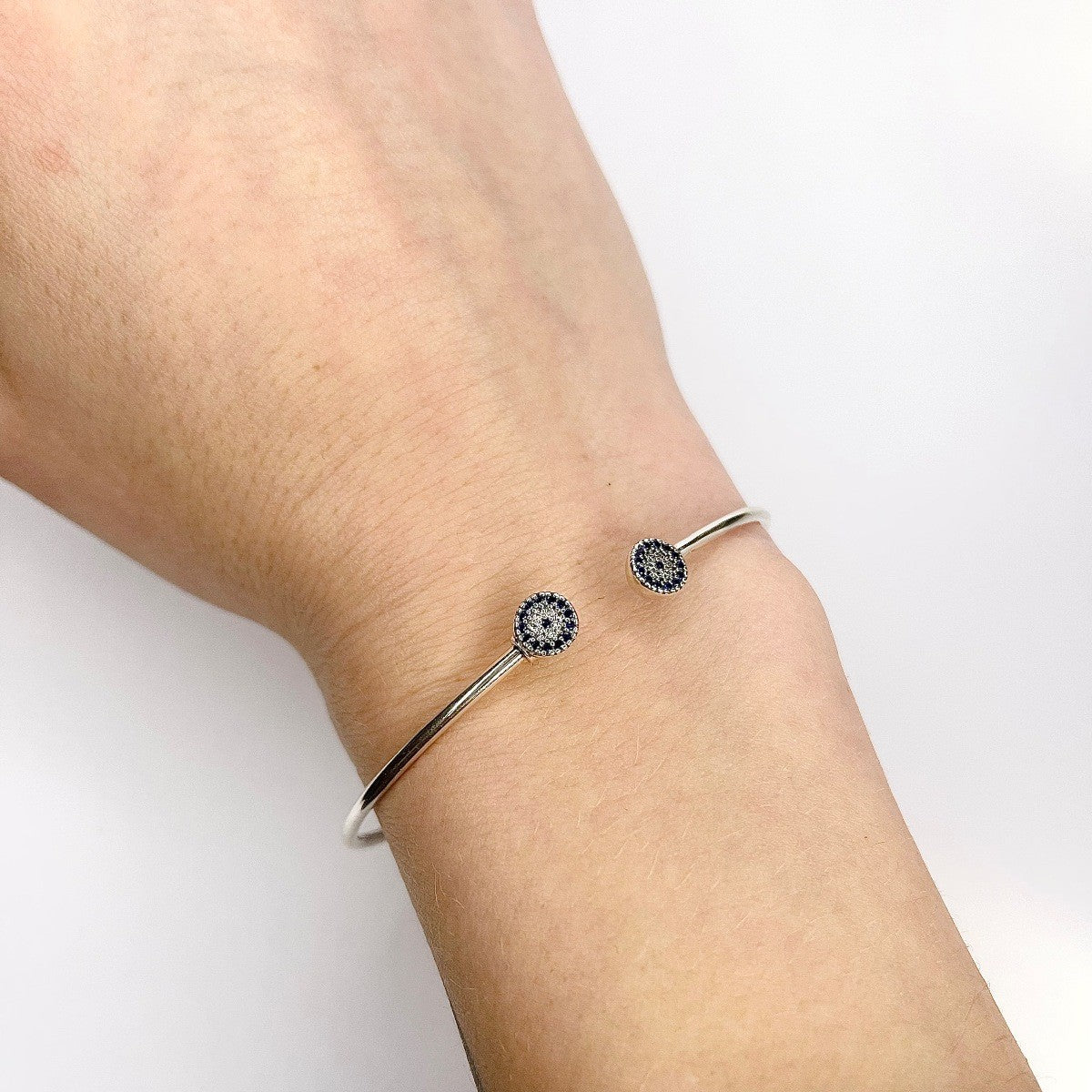 Sidabrinė apyrankė su baltais ir mėlynais cirkoniais
