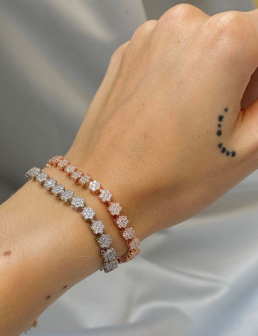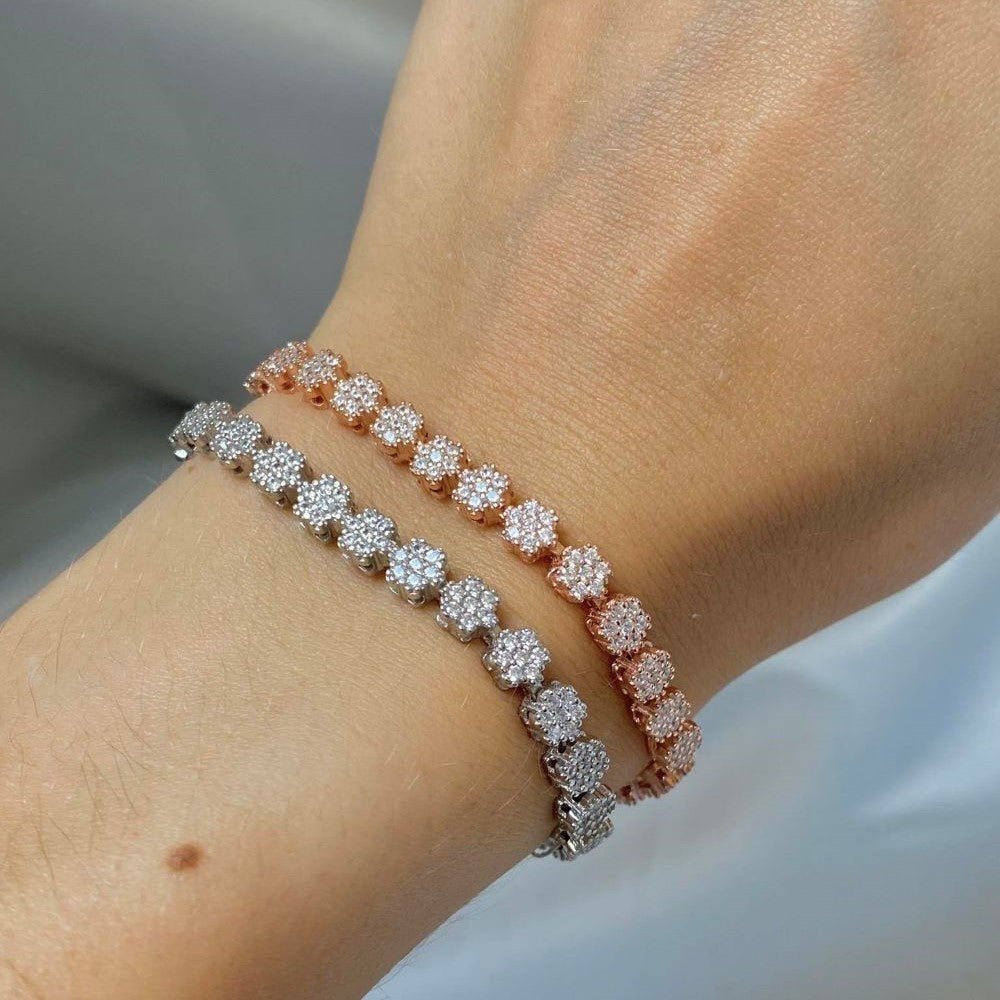 Sidabrinė apyrankė su mažomis cirkonio gėlytėmis