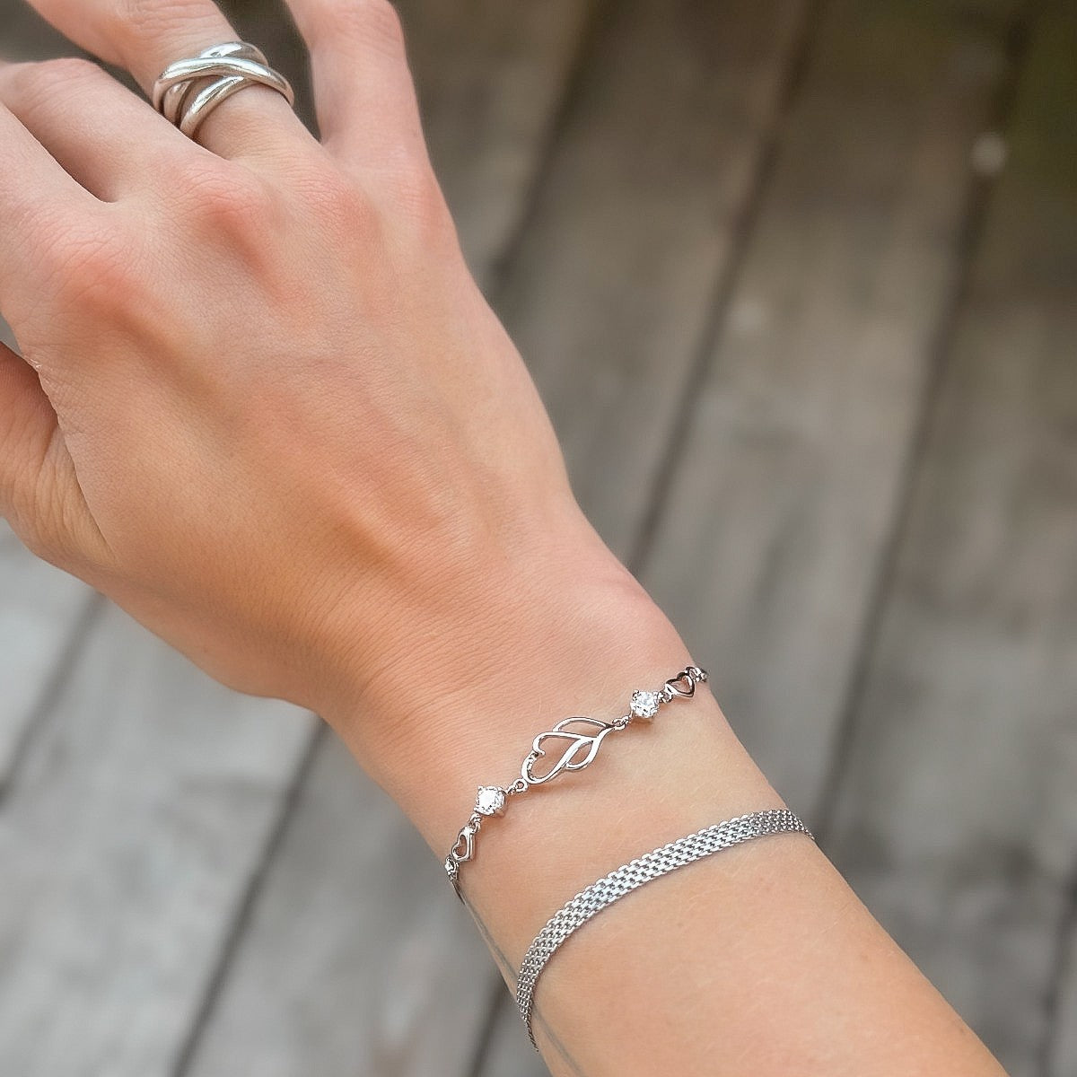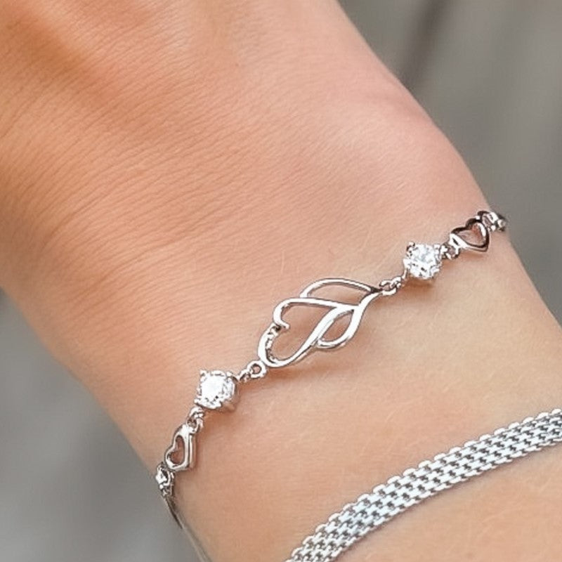 Sidabrinė apyrankė su širdelėmis ir baltais kristalais
