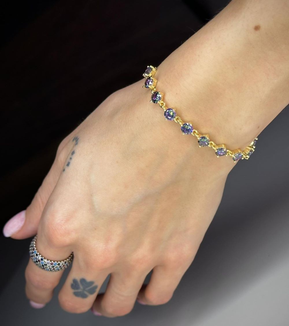Sidabrinė auksuota apyrankė su 11 mistinio topazo akmenėlių