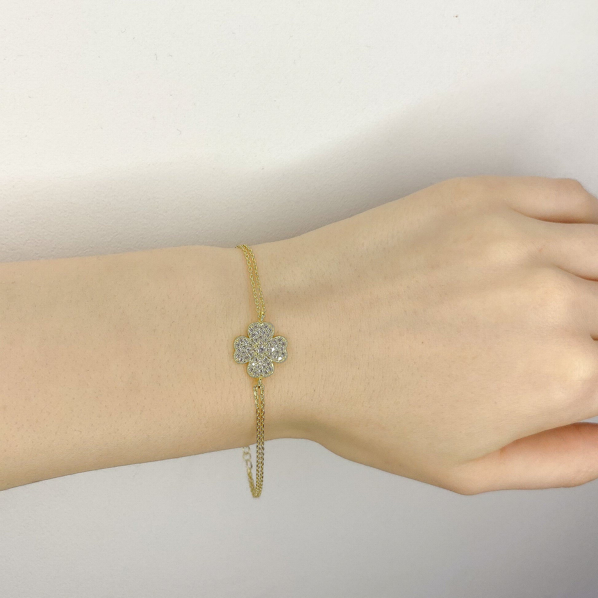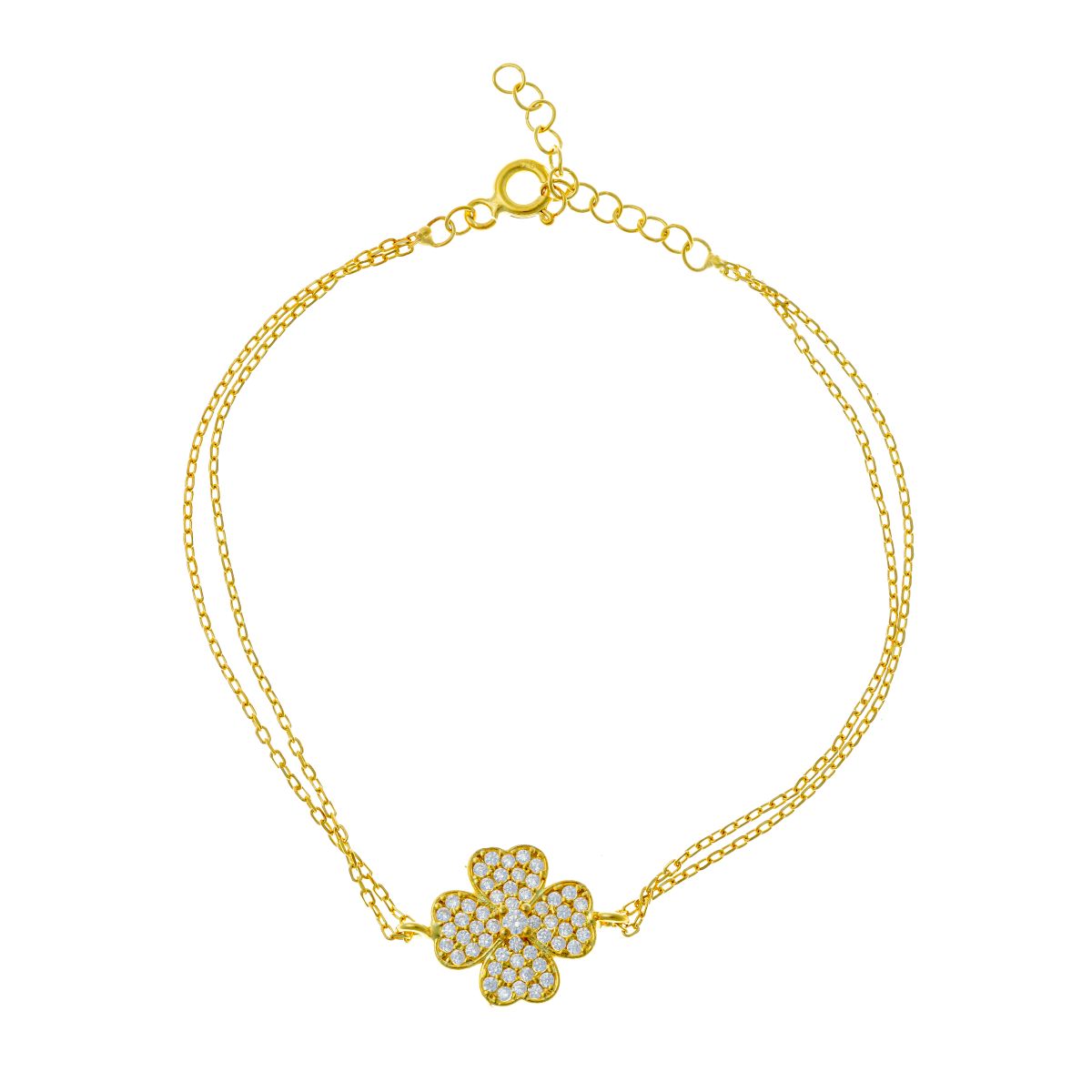 Sidabrinė auksuota apyrankė su dobilo lapu