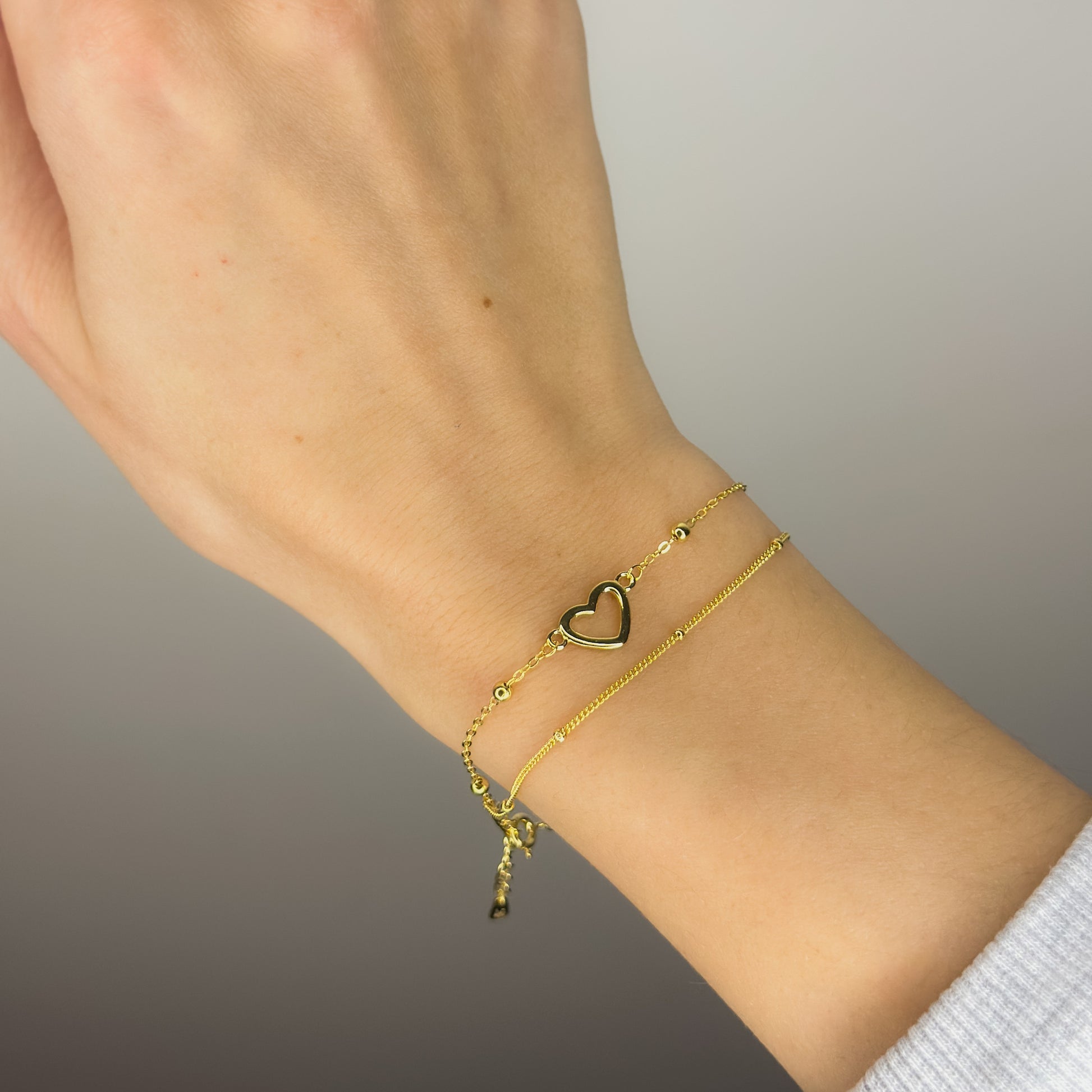 Sidabrinė auksuota dviejų gijų apyrankė su širdelėmis