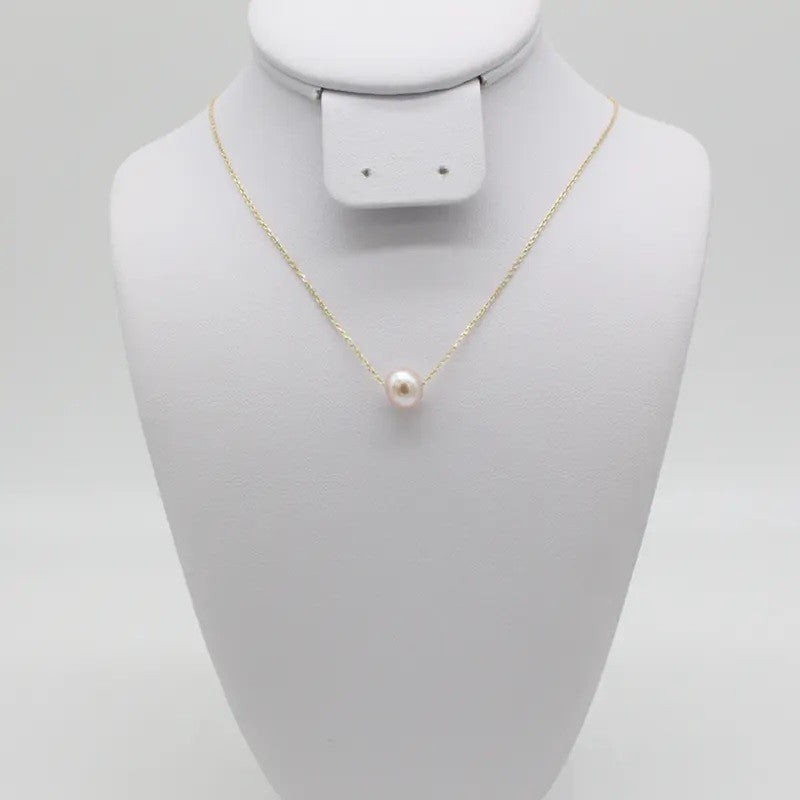 Sidabrinė auksuota grandinėlė su tikru persikinio atspalvio perlu