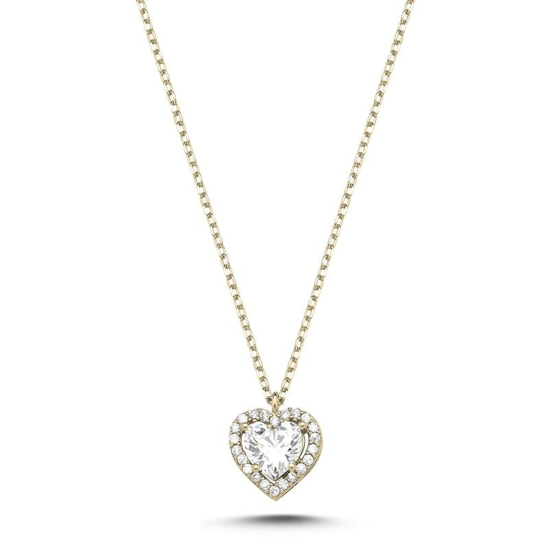 Sidabrinė auksuota širdelė su cirkoniais ir grandinėle