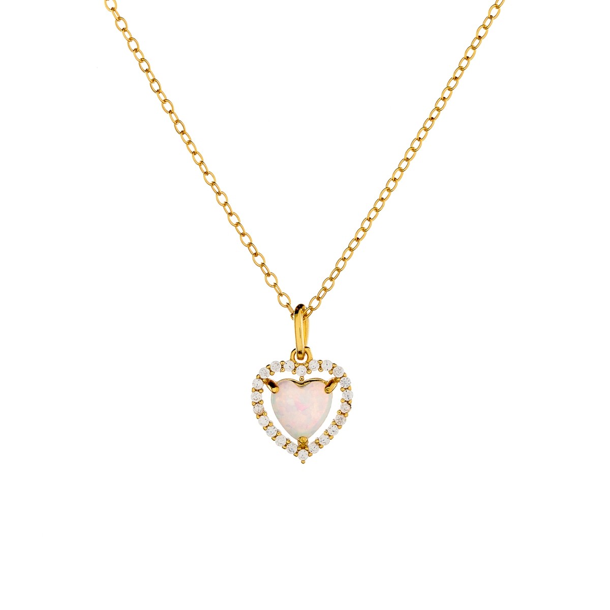 Sidabrinė auksuota širdelė su sintetiniu opalu, cirkoniais ir grandinėle