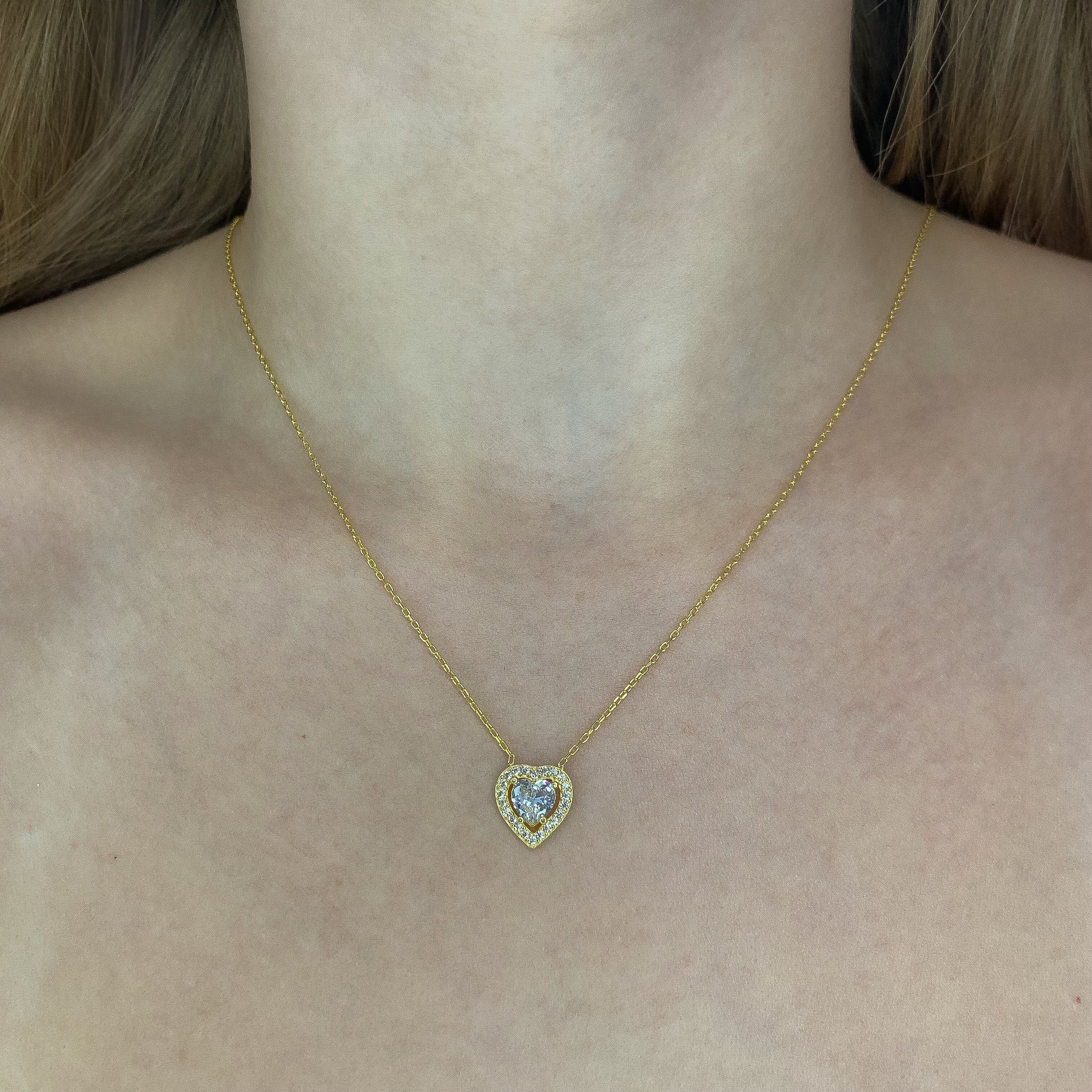 Sidabrinė auksuota širdutė su cirkoniu ir grandinėle