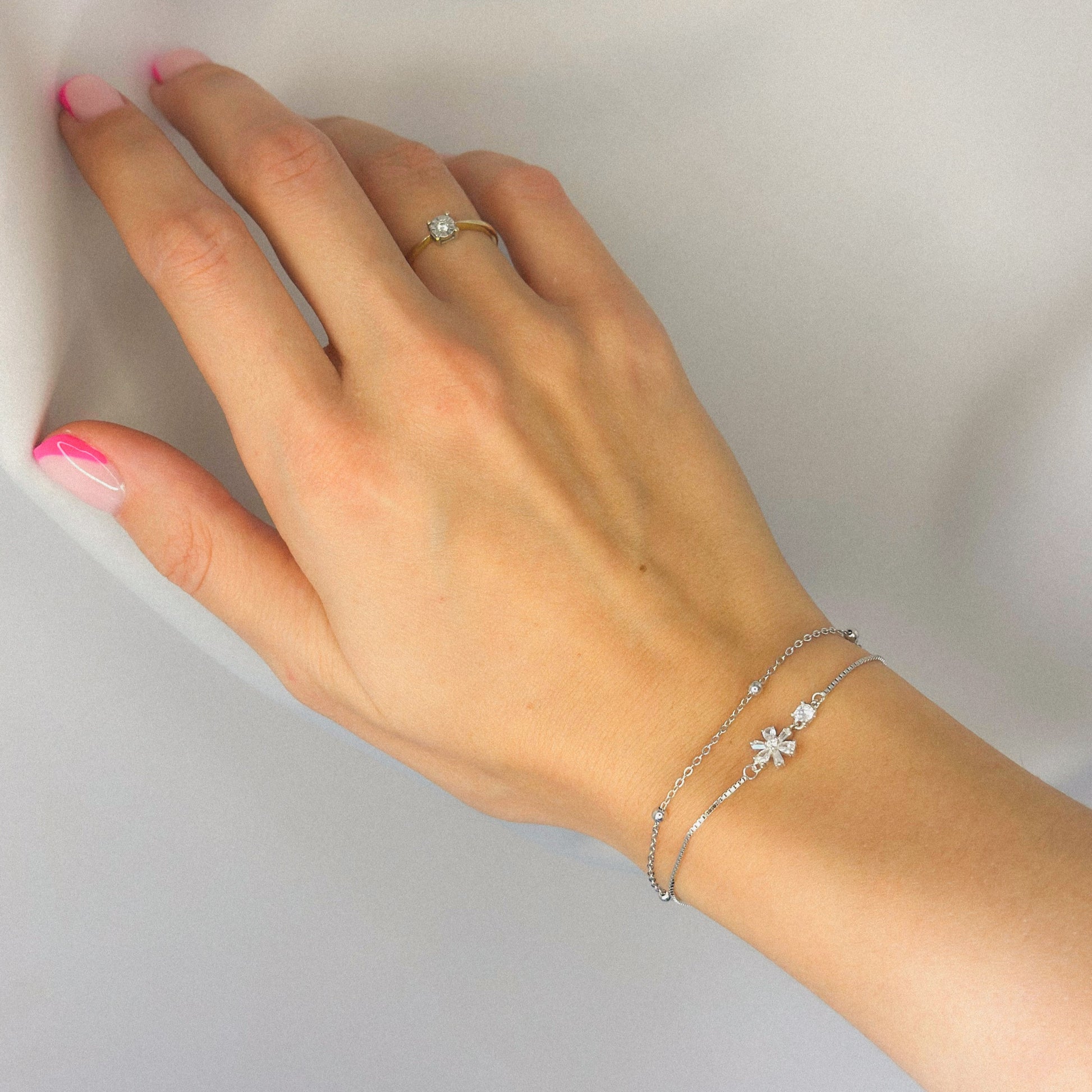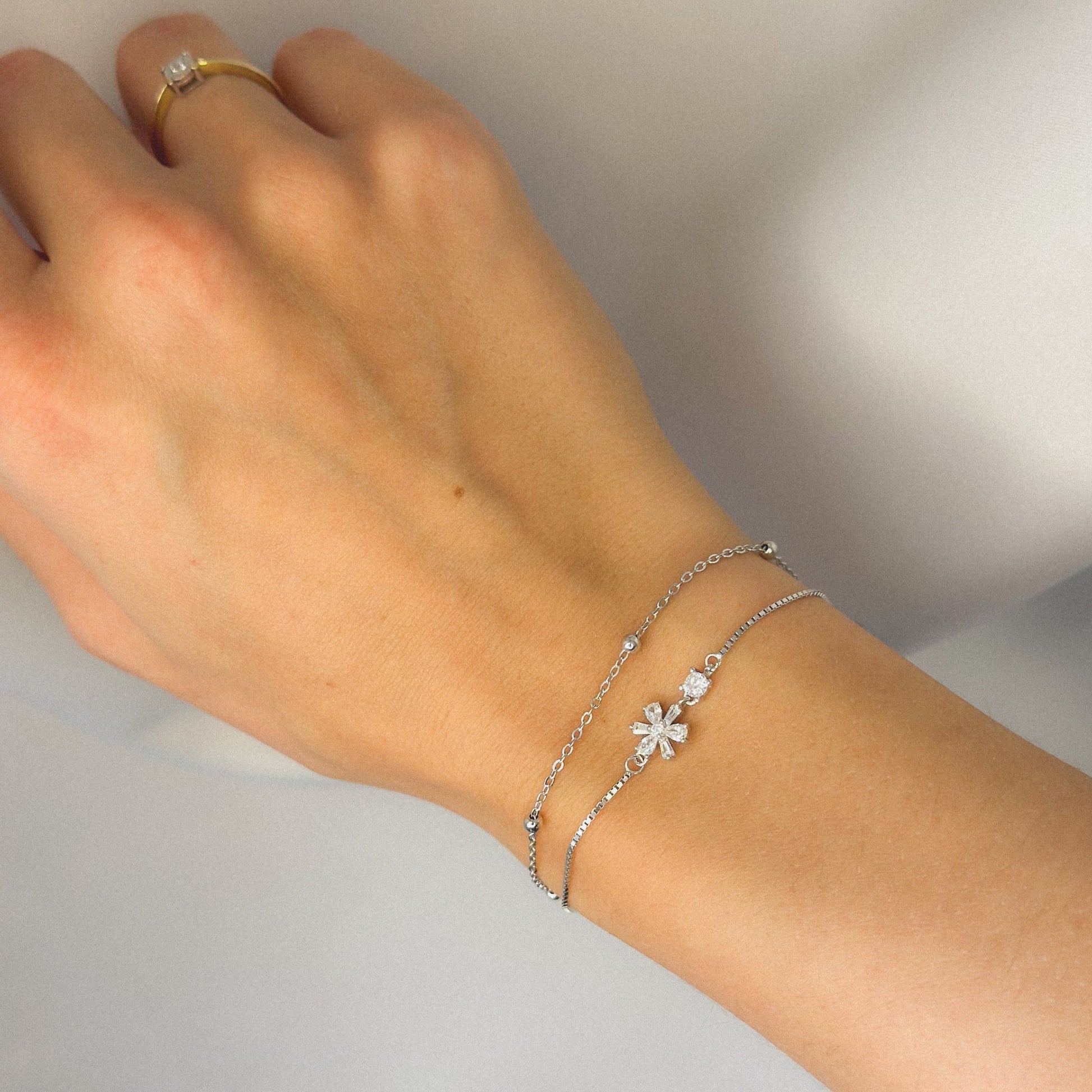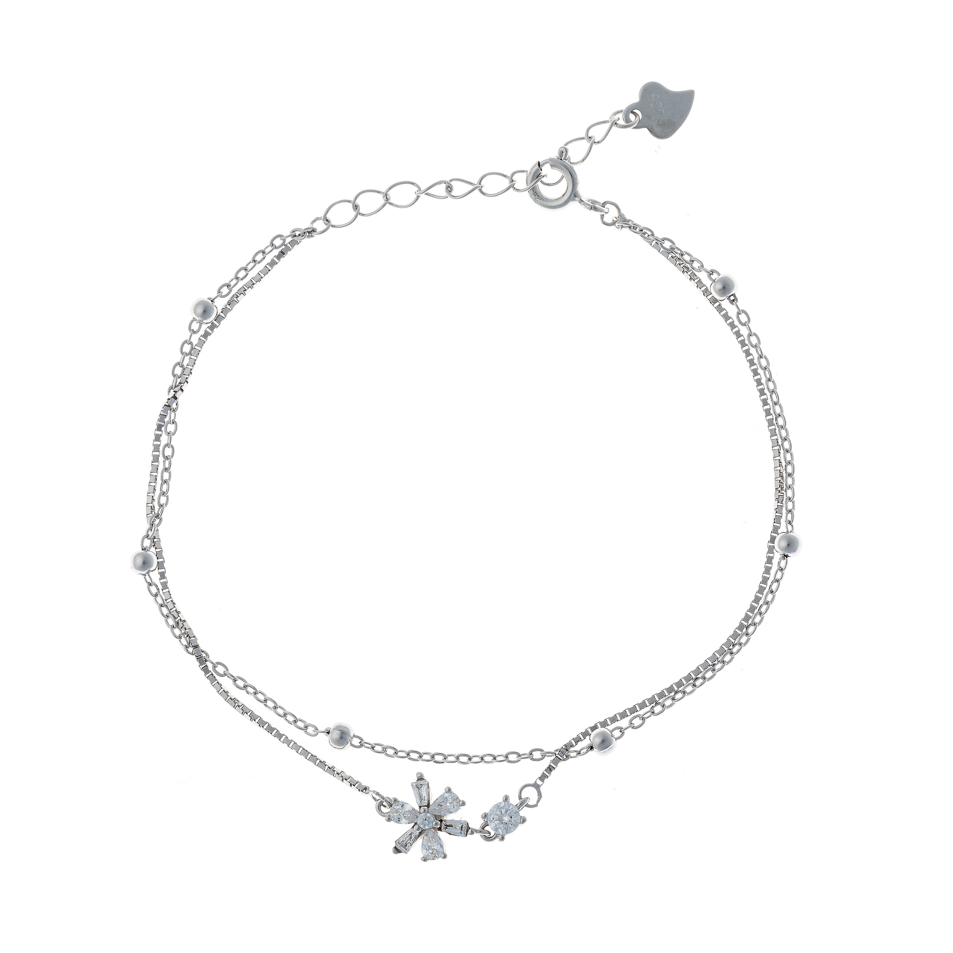 Sidabrinė dviejų gijų apyrankė su cirkoniais "Gėlyte"