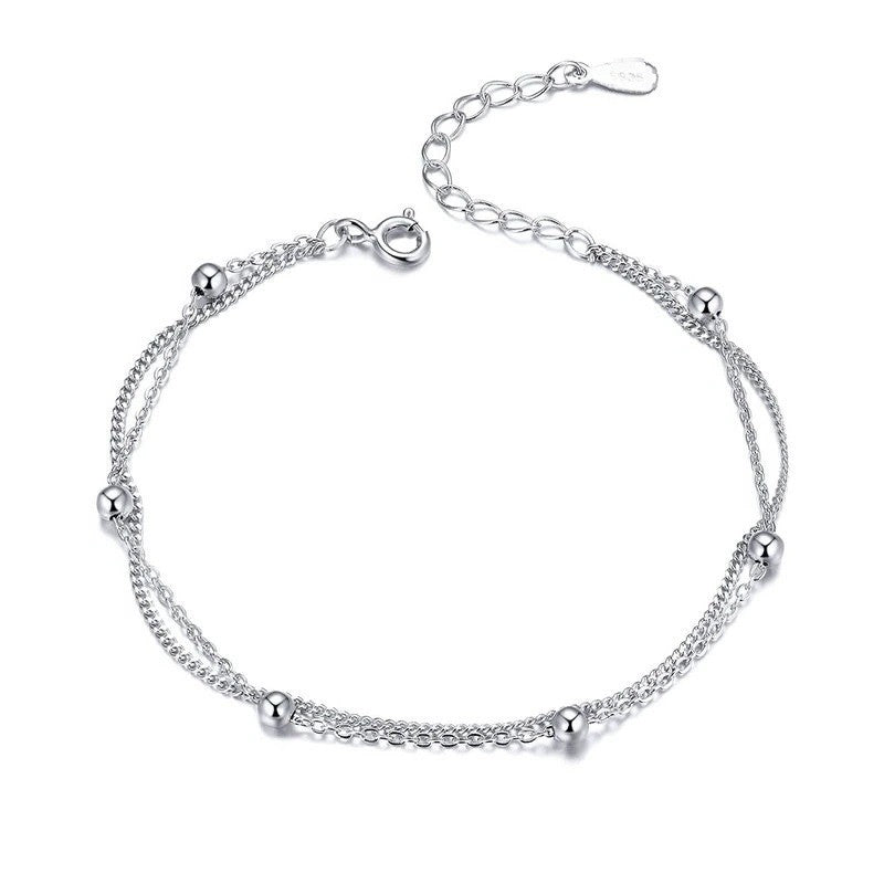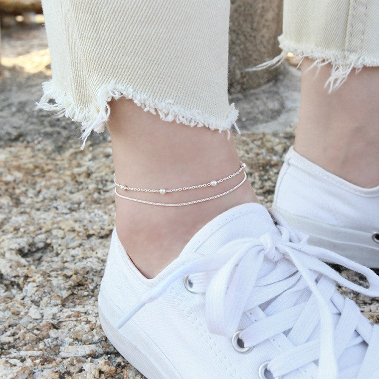 Sidabrinė grandinėlė ant kojos su burbuliukais