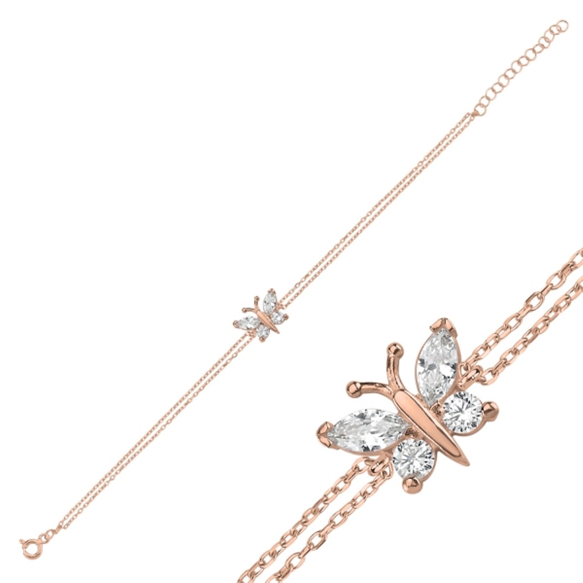 Sidabrinė paauksuota apyrankė su cirkonio drugeliu