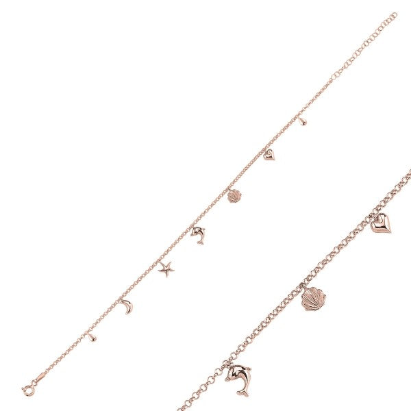 Sidabrinė paauksuota grandinėlė ant kojos su delfinu