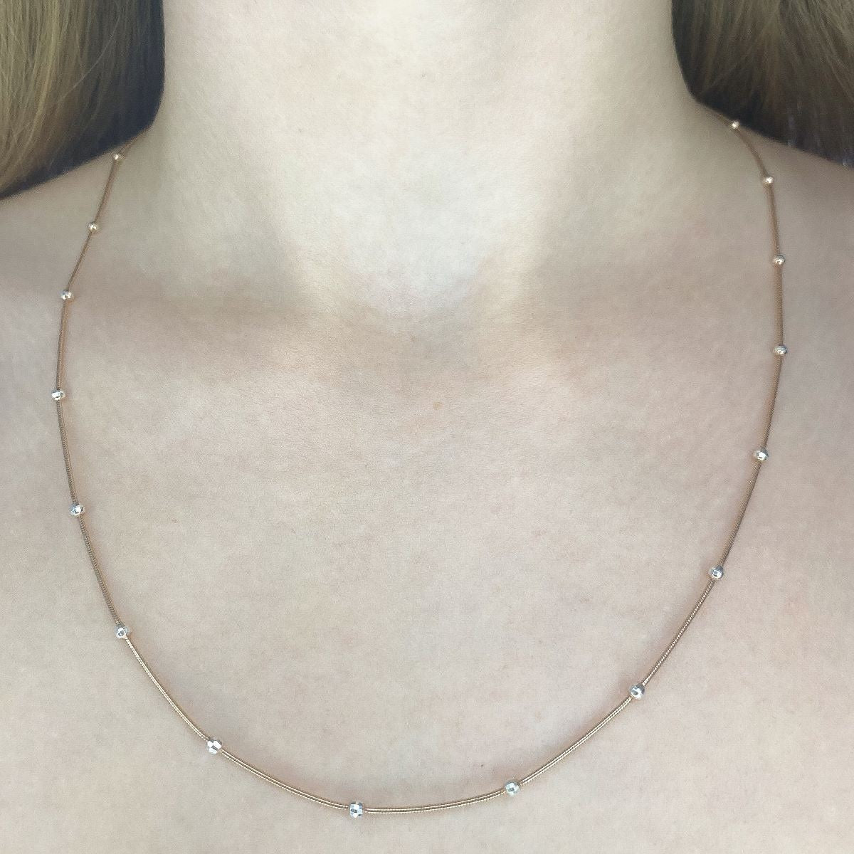 Sidabrinė paauksuota kolje su rodžiuotais burbuliukais