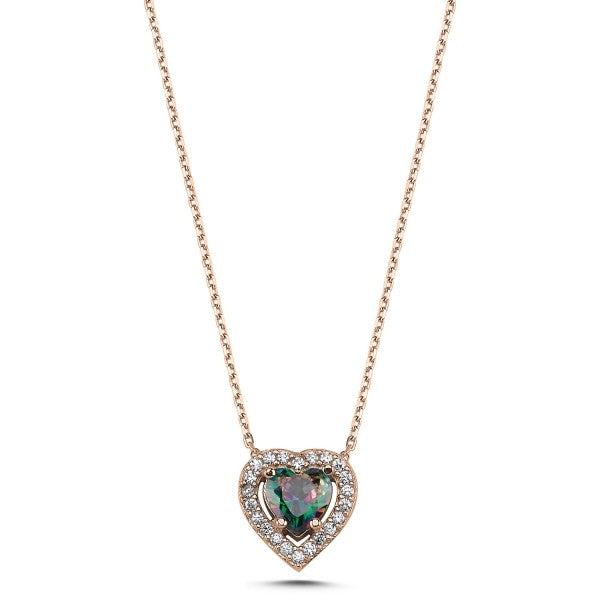 Sidabrinė paauksuota širdutė su mistiniu topazu ir grandinėle
