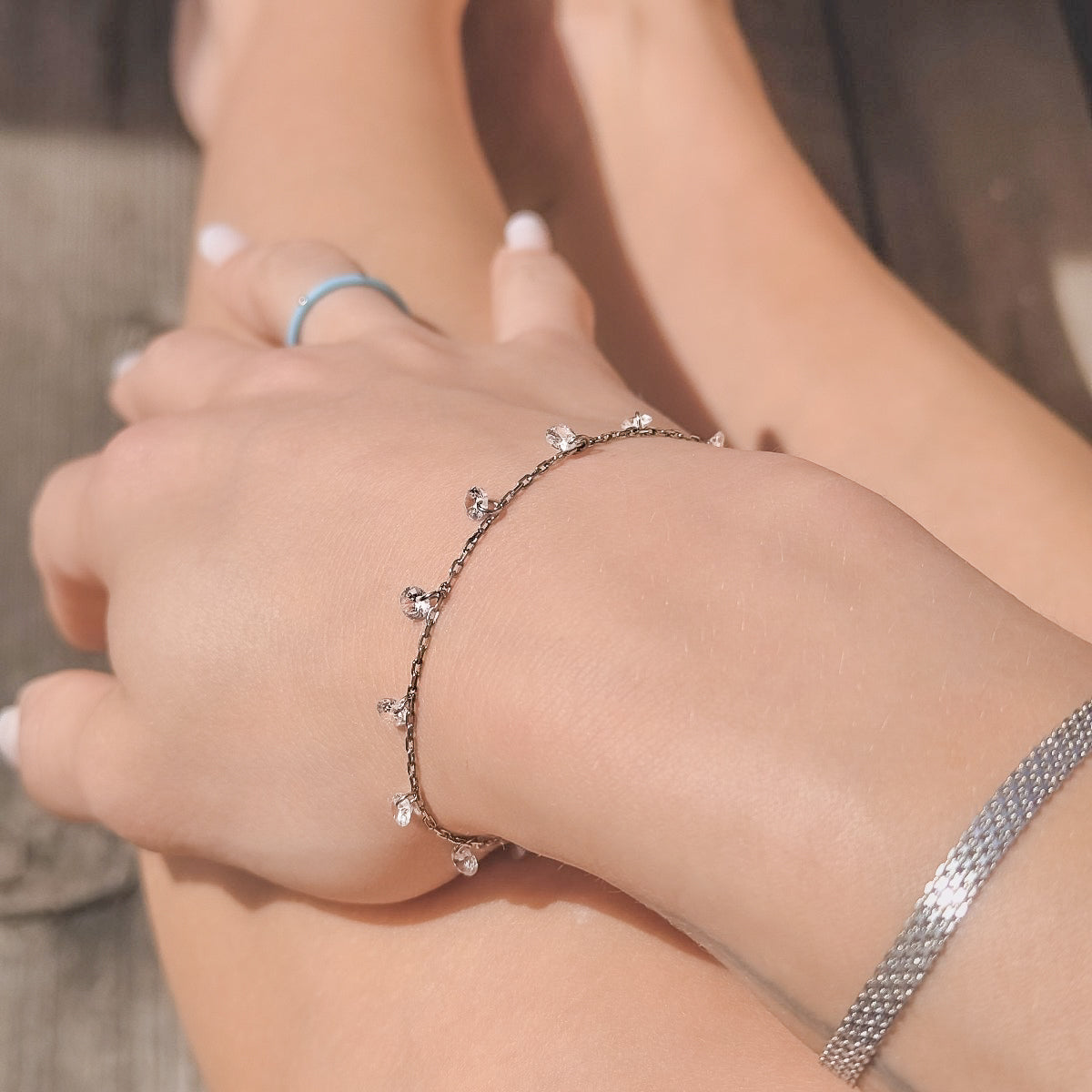 Sidabrinė rodžiuota apyrankė su cirkonio pakabukais