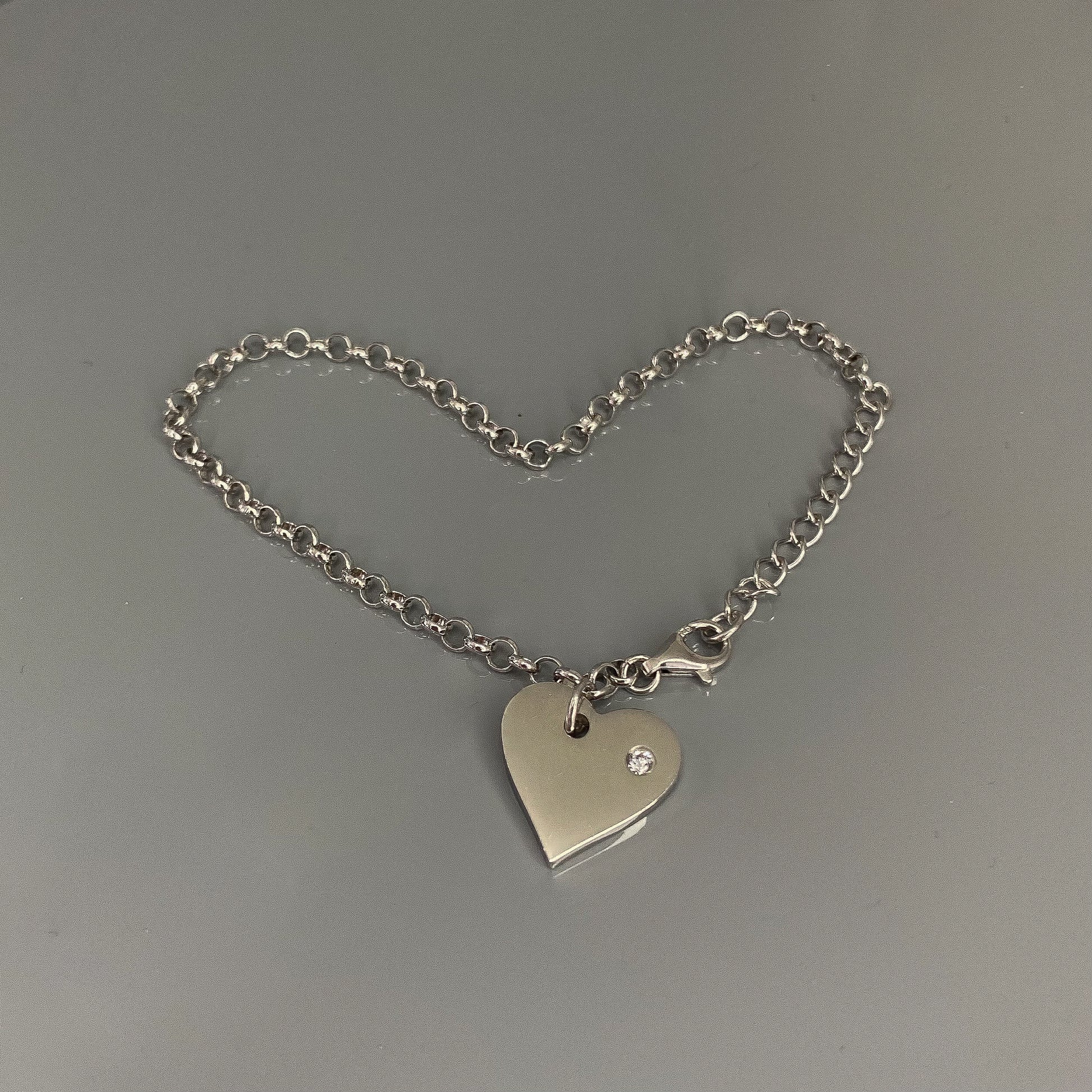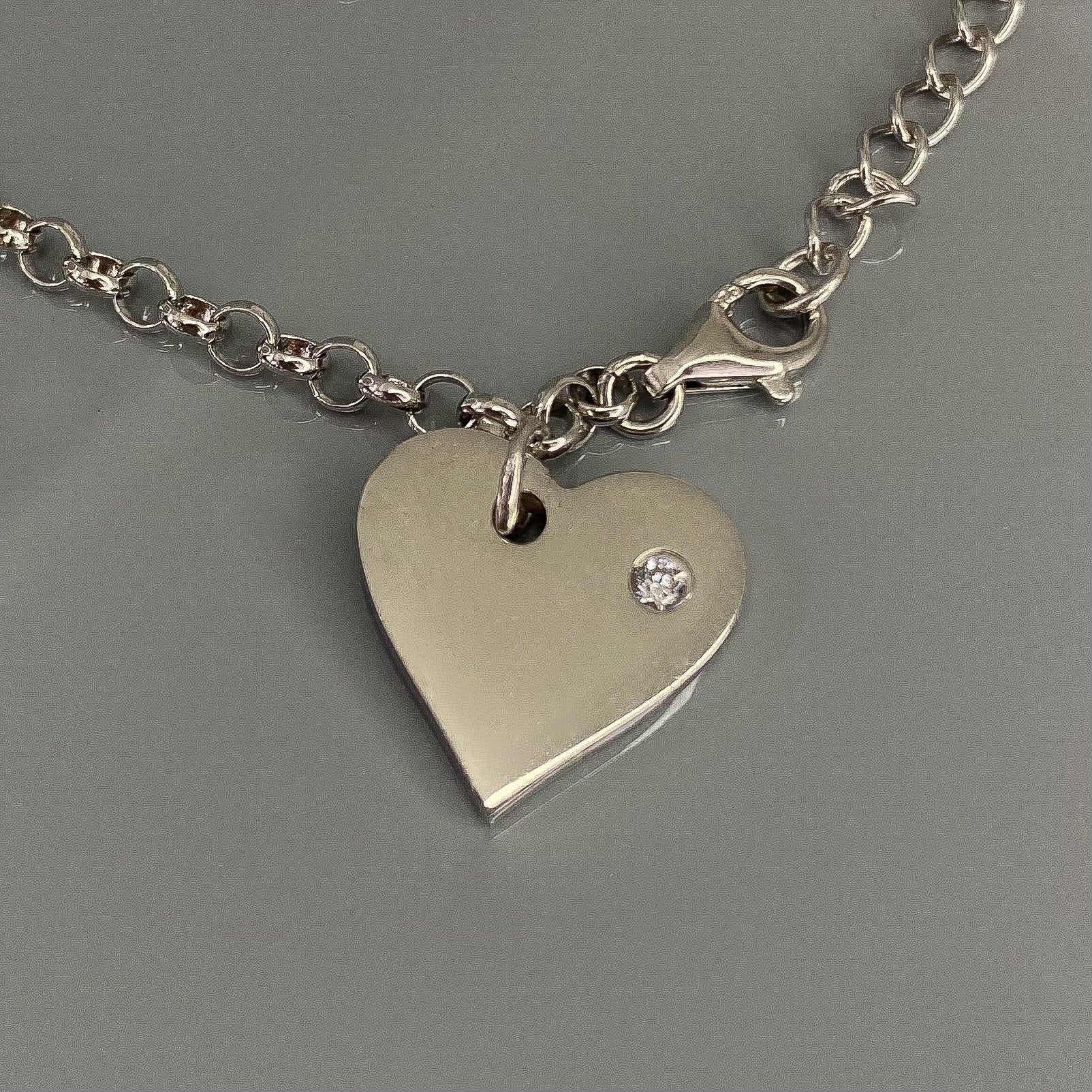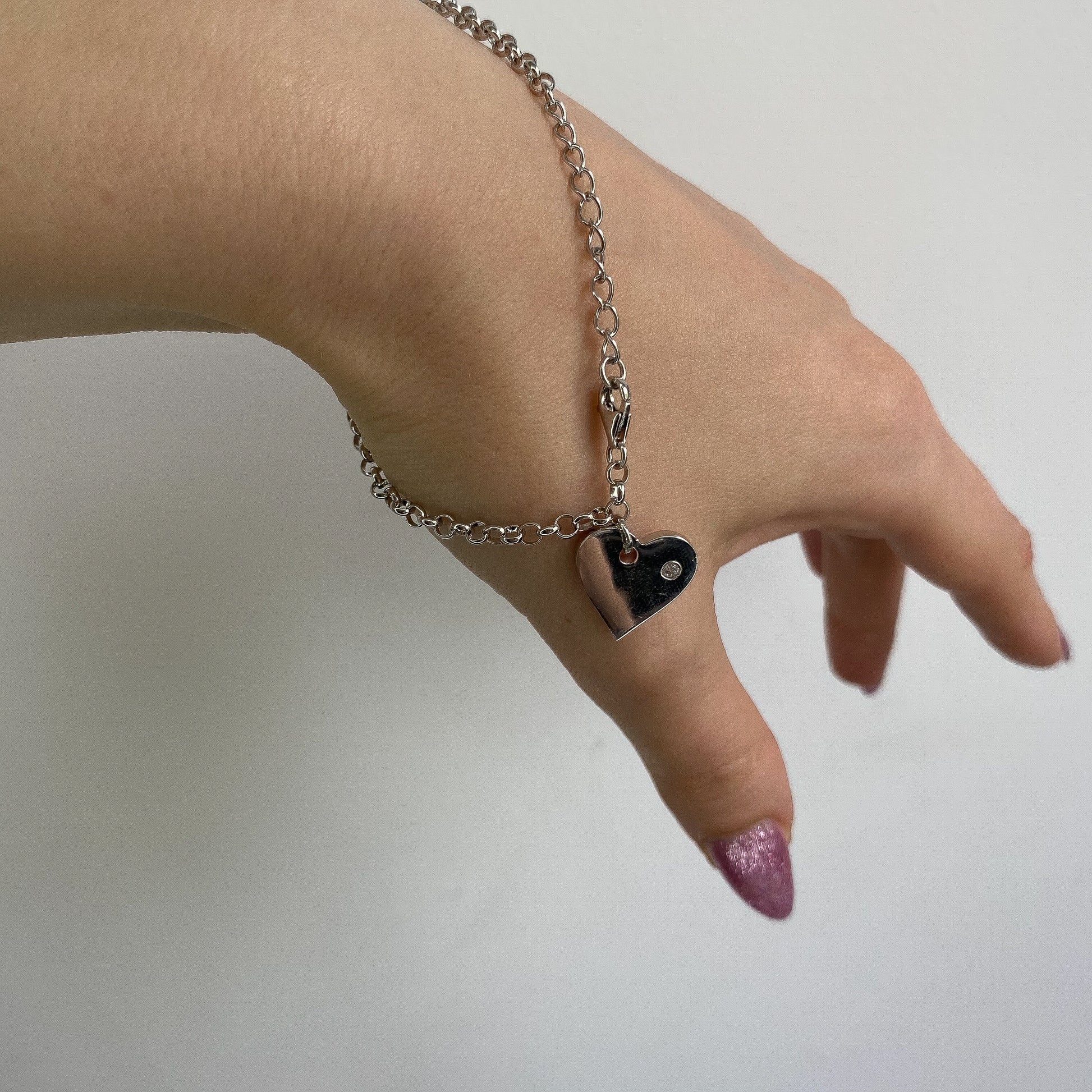 Sidabrinė rodžiuota apyrankė su kabančia širdele