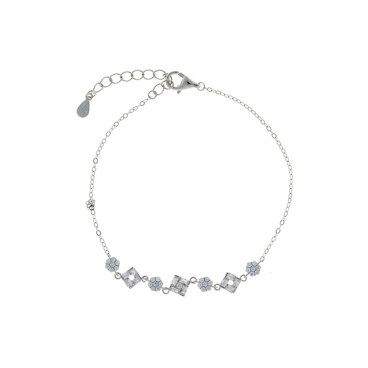 Sidabrinė rodžiuota apyrankė su rombais ir gėlytėmis