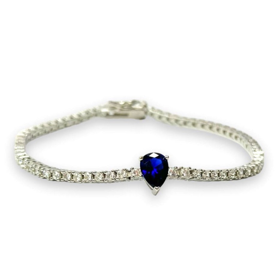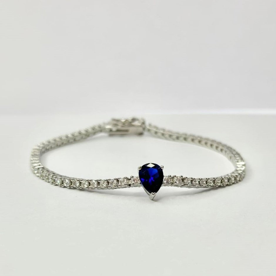 Sidabrinė rodžiuota apyrankė Tennis su lašo formos mėlynu cirkoniu