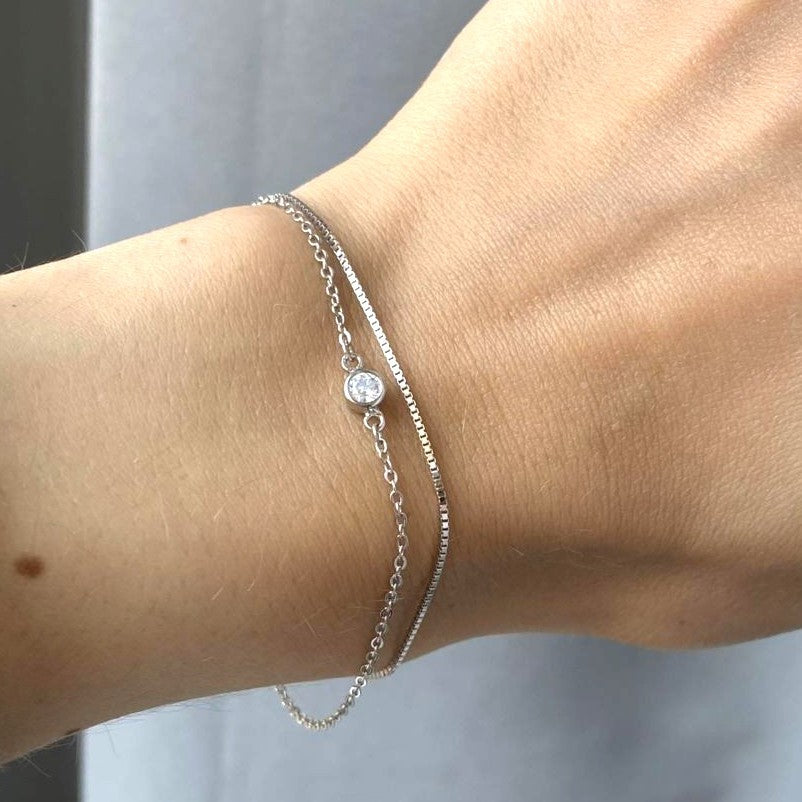 Sidabrinė rodžiuota dviejų gijų apyrankė su cirkoniu