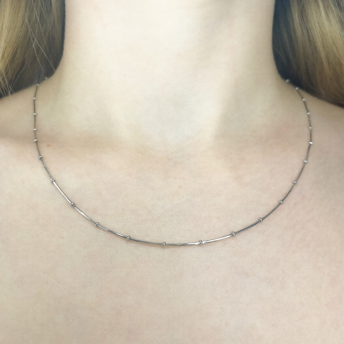Sidabrinė rodžiuota kolje su burbuliukais