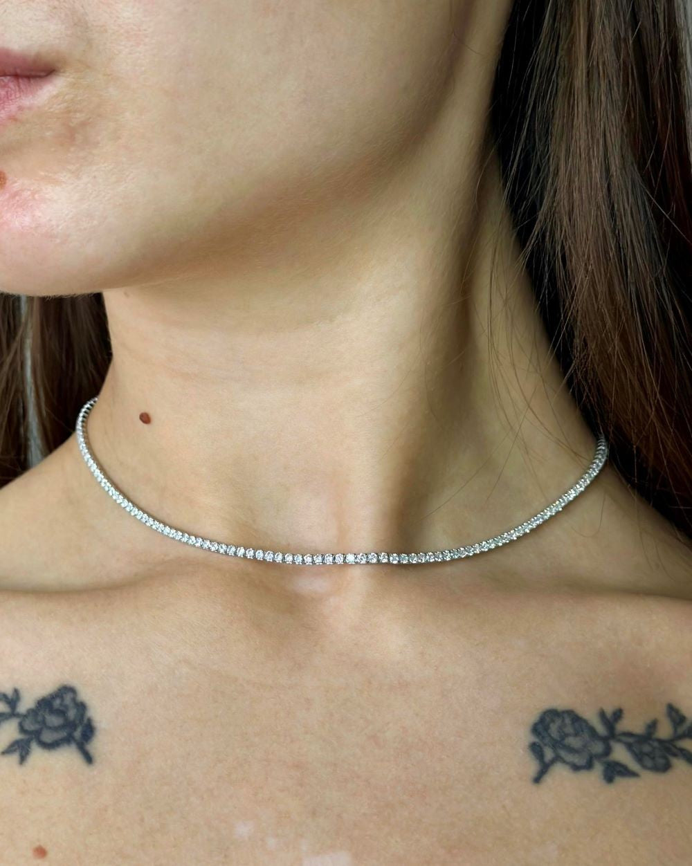 Sidabrinė rodžiuota koljė Tennis su cirkoniais 1,5mm
