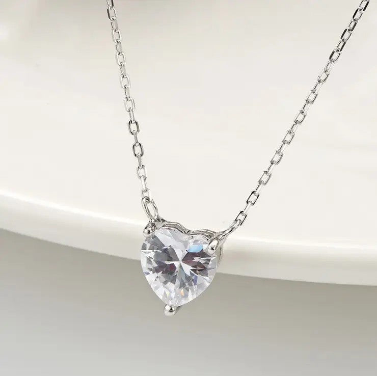 Sidabrinė rodžiuota širdelė su cirkoniu ir grandinėle