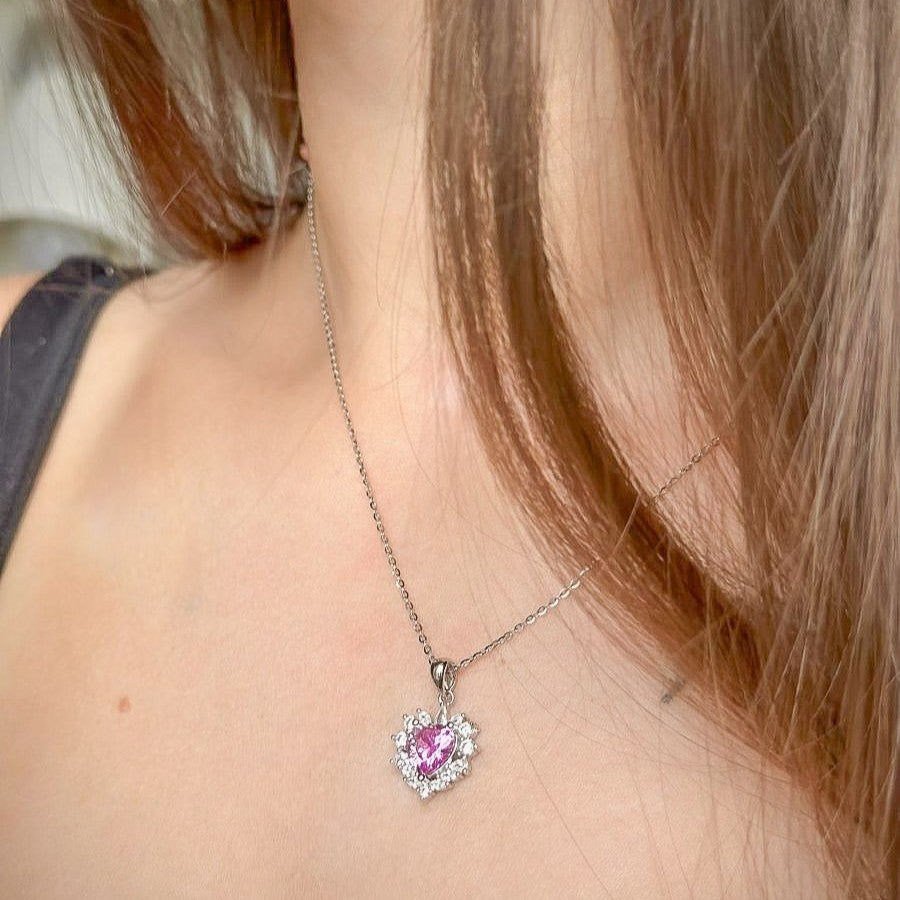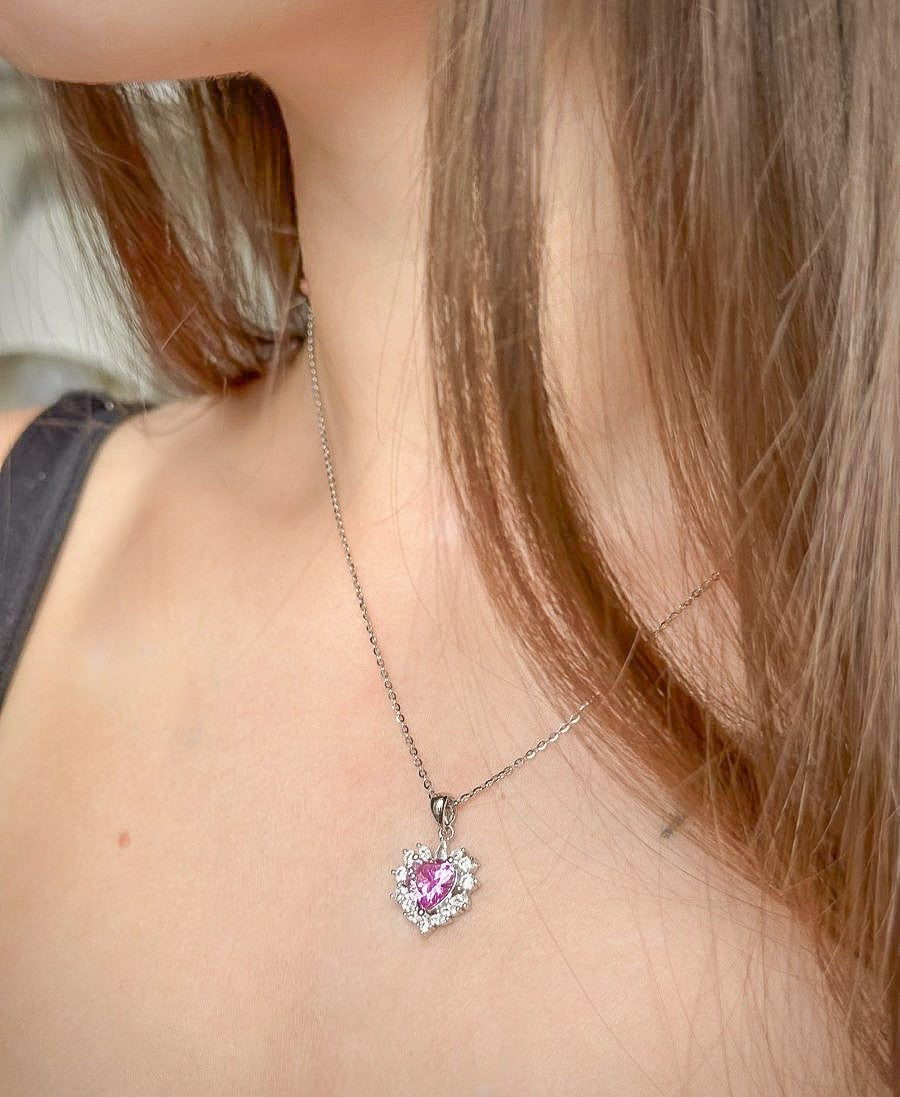 Sidabrinė rodžiuota širdelė su rožiniu cirkoniu ir grandinėle