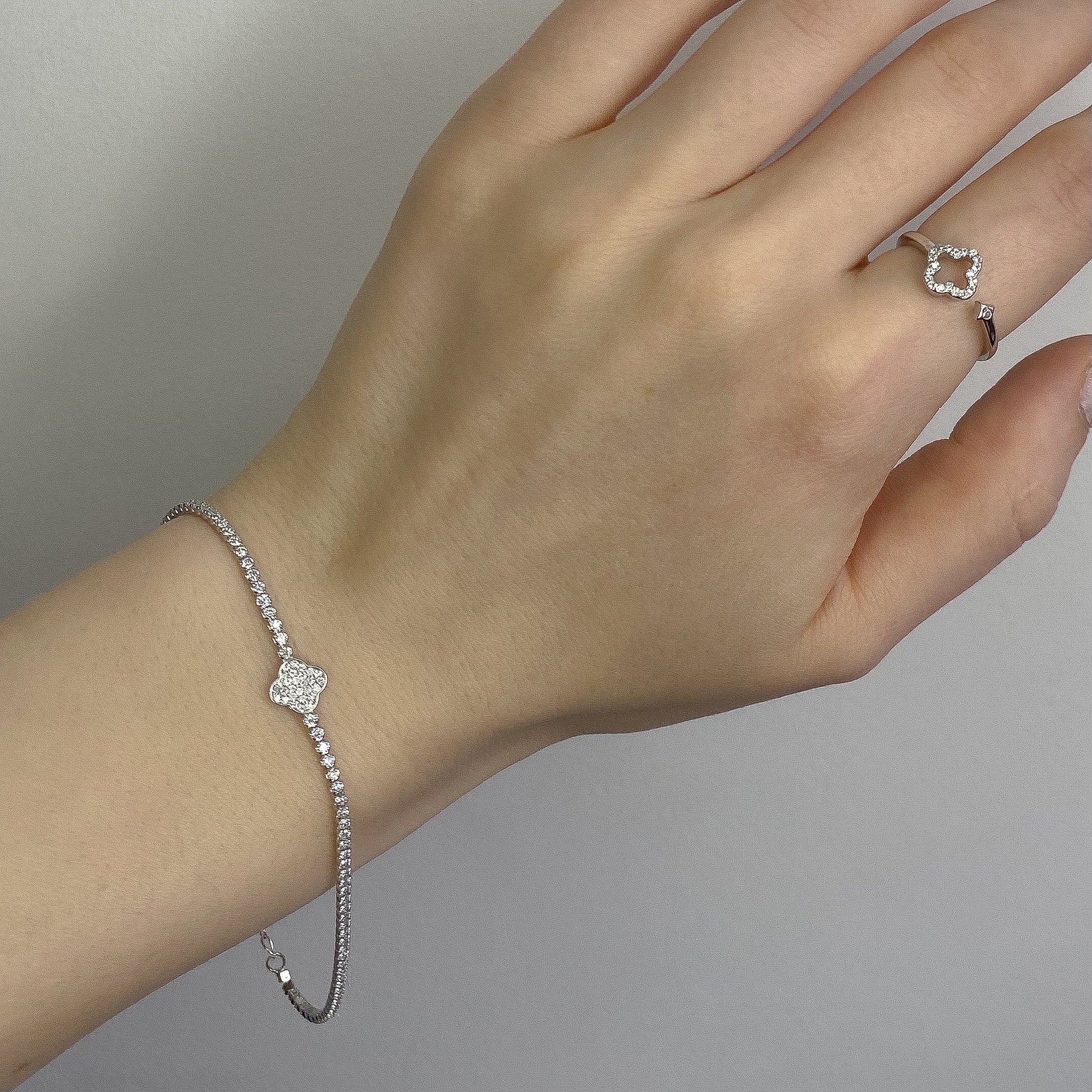 Sidabrinė rodžiuota Tennis apyrankė "Dobilas"