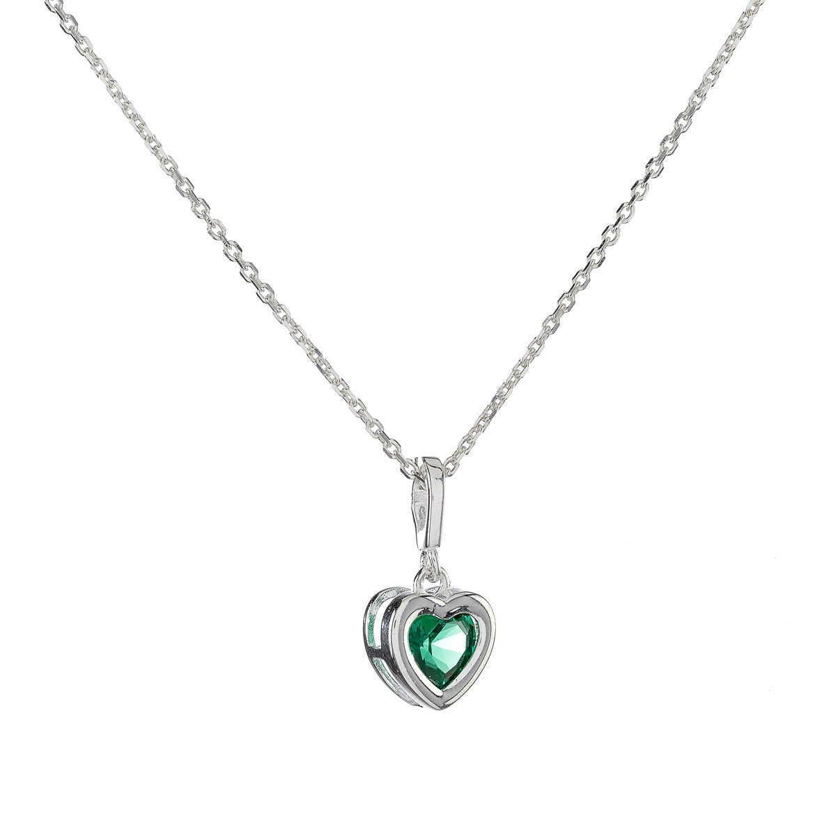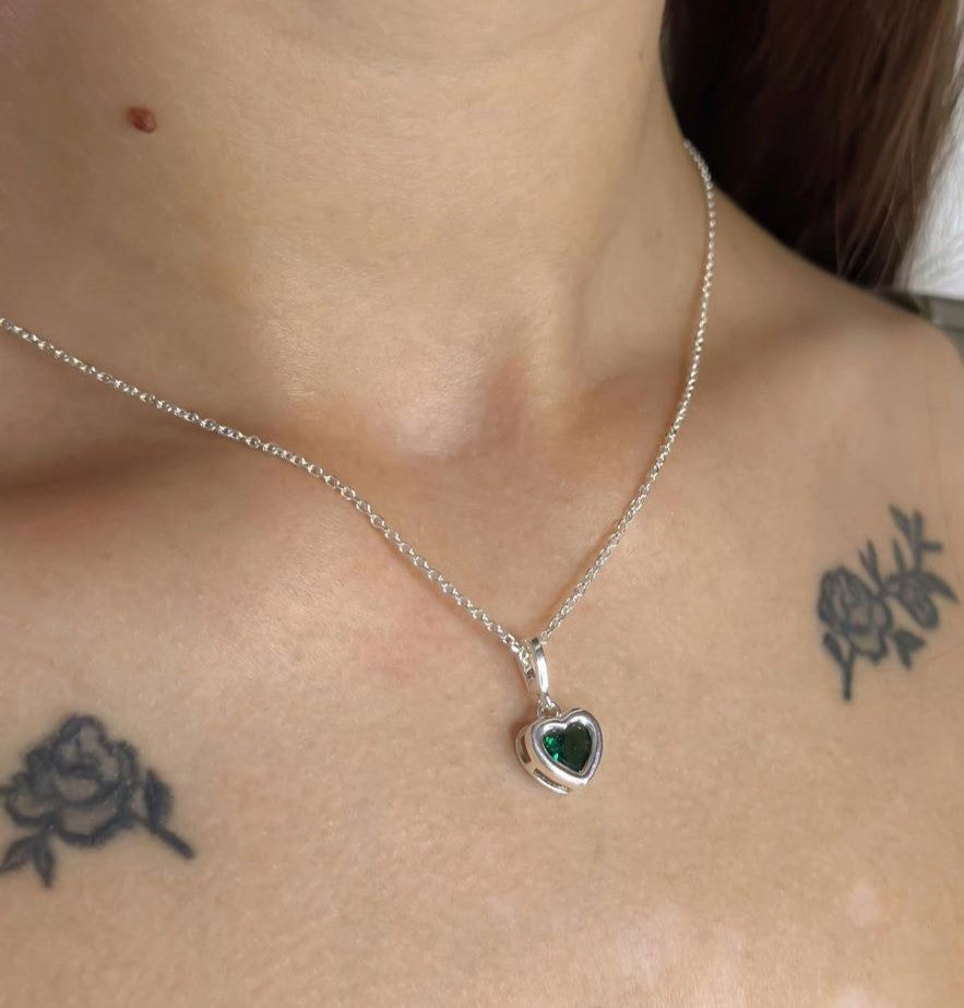 Sidabrinė širdelė su žaliu cirkoniu ir grandinėle