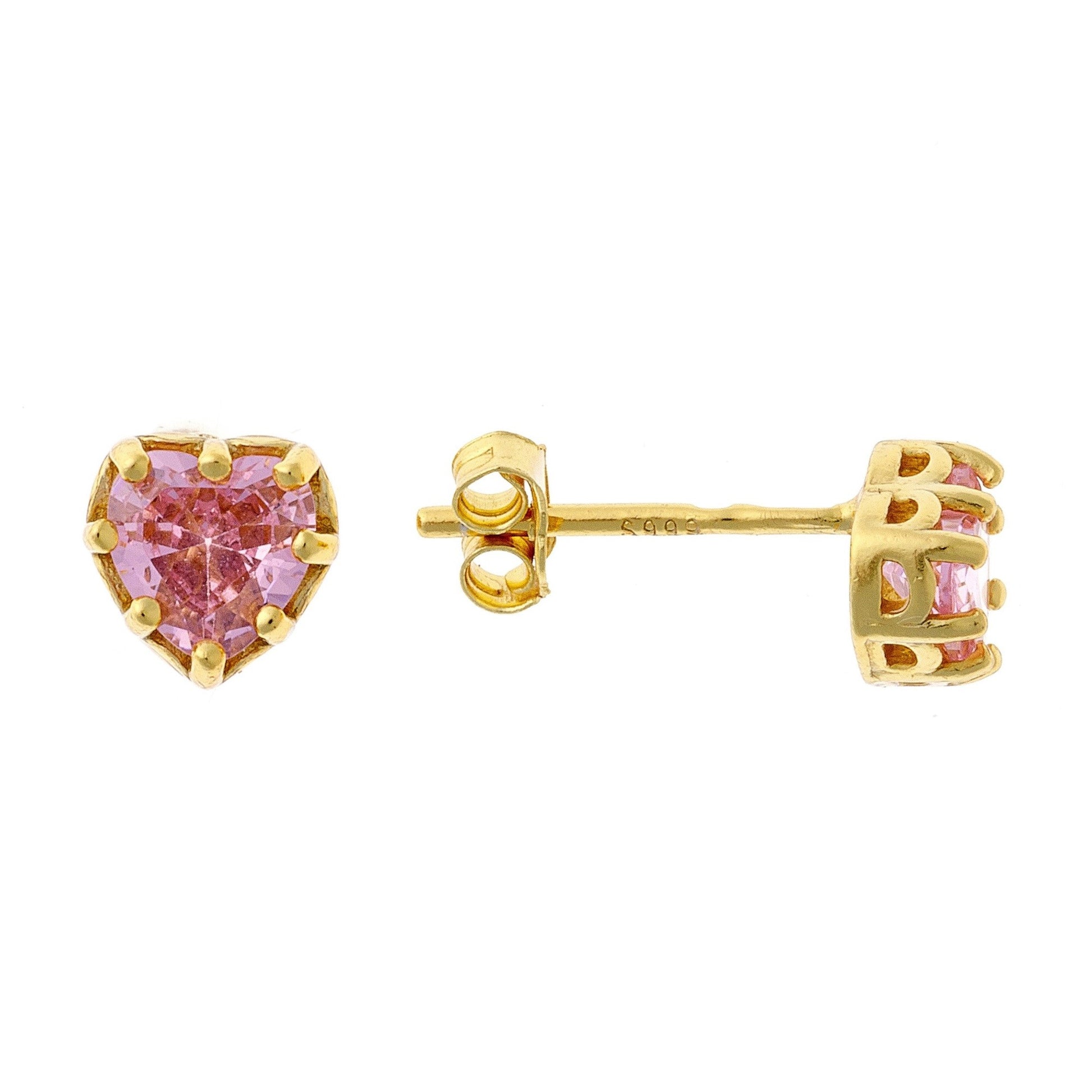 Sidabrinės auksuotos širdutės su raudonu arba rožiniu cirkoniu