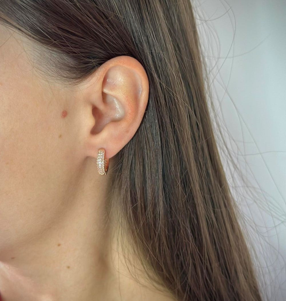 Sidabrinės paauksuotos 1,5 cm rinkutės su 3 eilėmis cirkonių