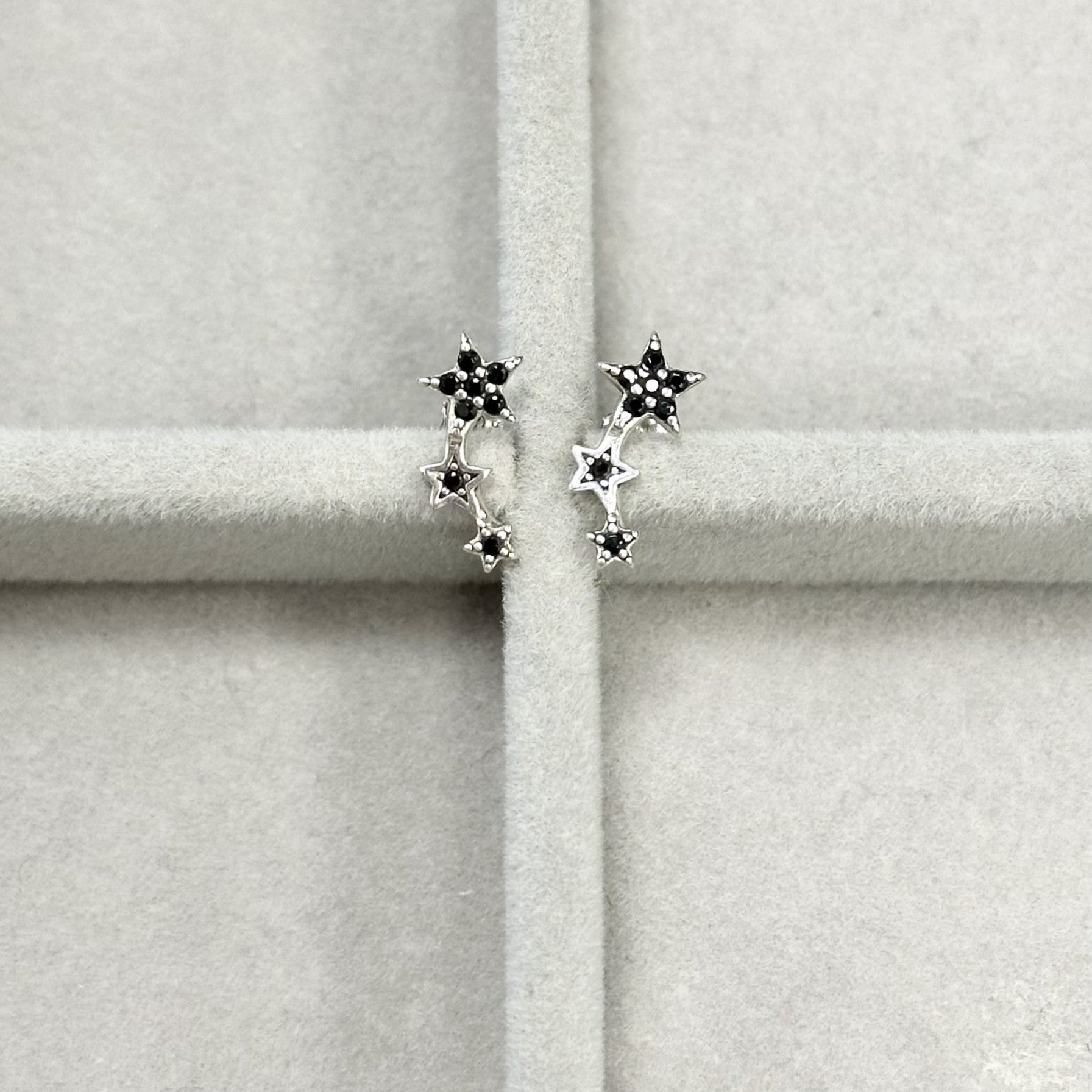 Sidabrinės žvaigždutės su juodais cirkoniais