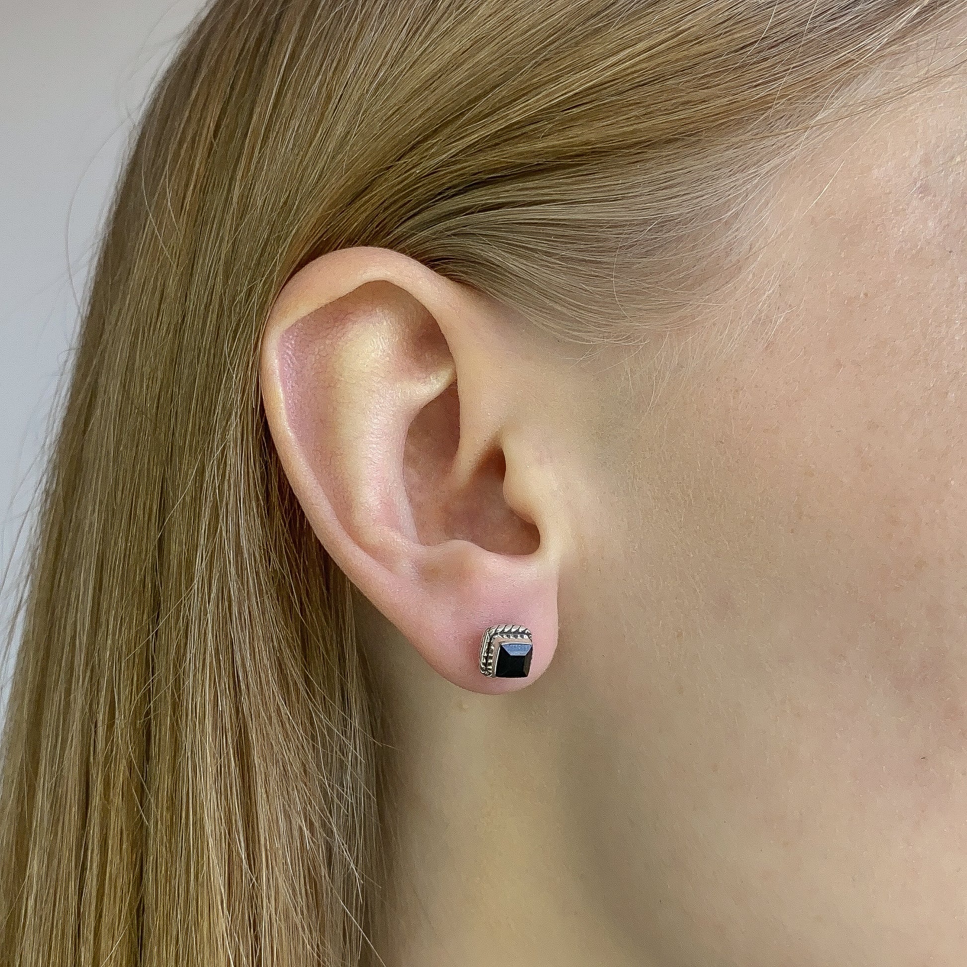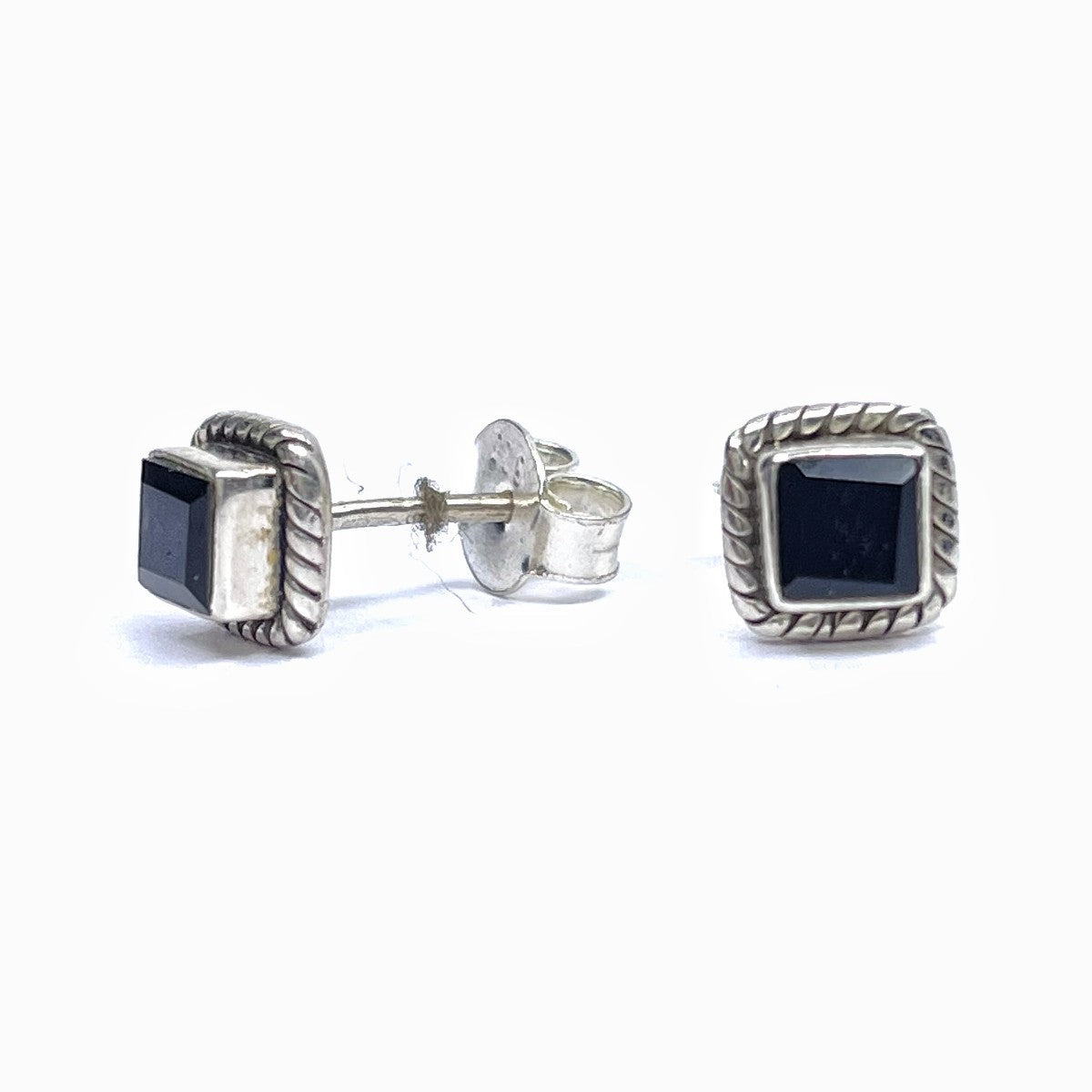 Sidabriniai kvadratiniai auskarai su onikso akmeniu