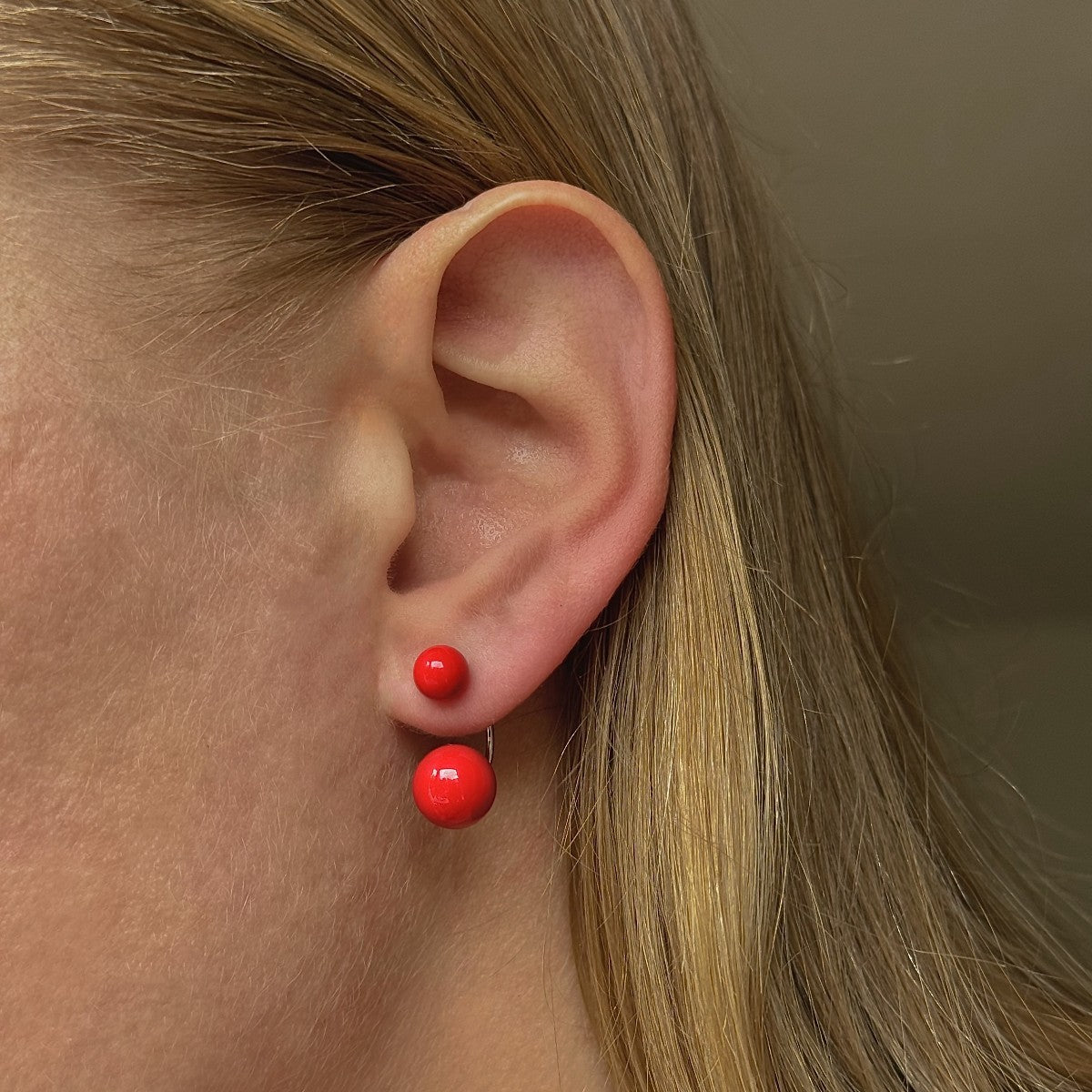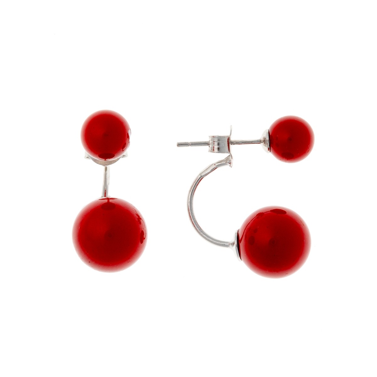 Sidabriniai dviejų dalių raudoni auskarai