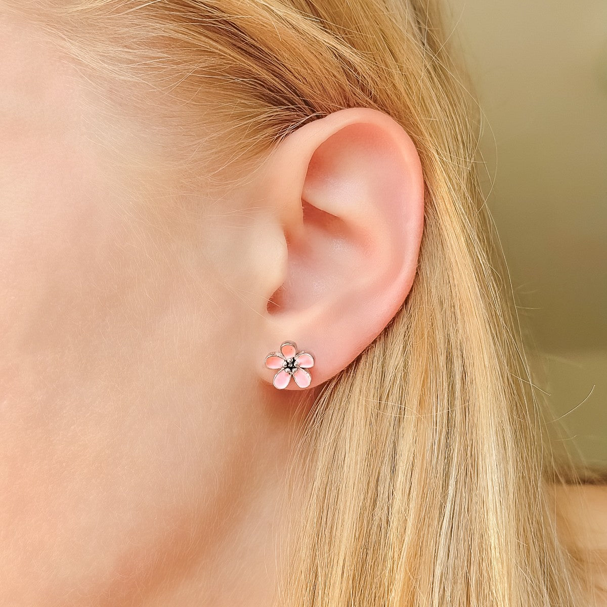 Sidabriniai emaliuoti auskarai rožinės gėlytės