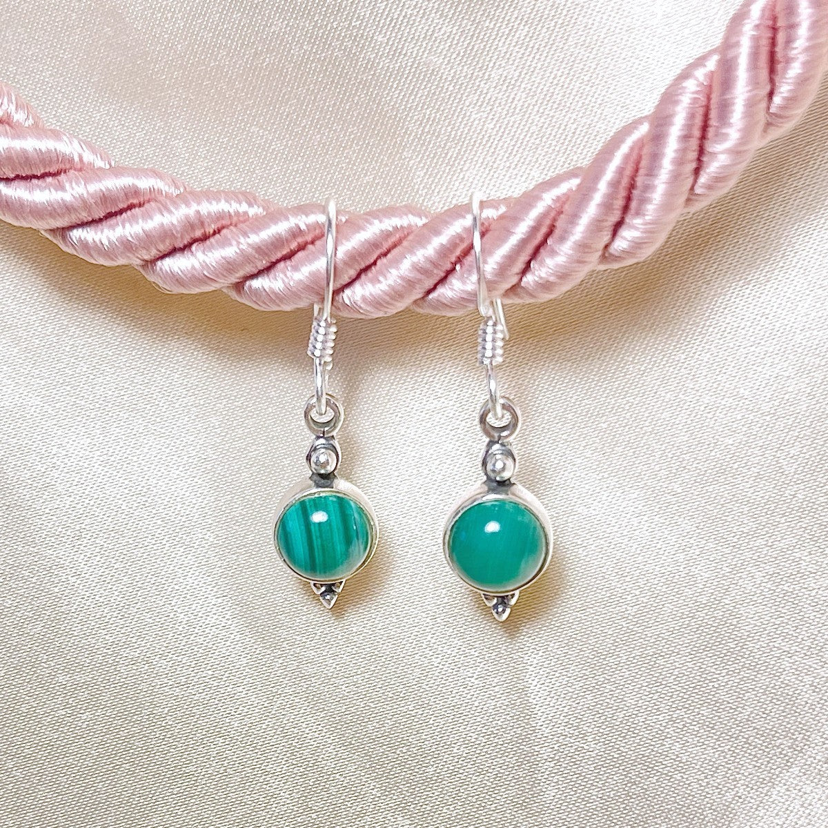 Sidabriniai kabantys auskarai su malachitu