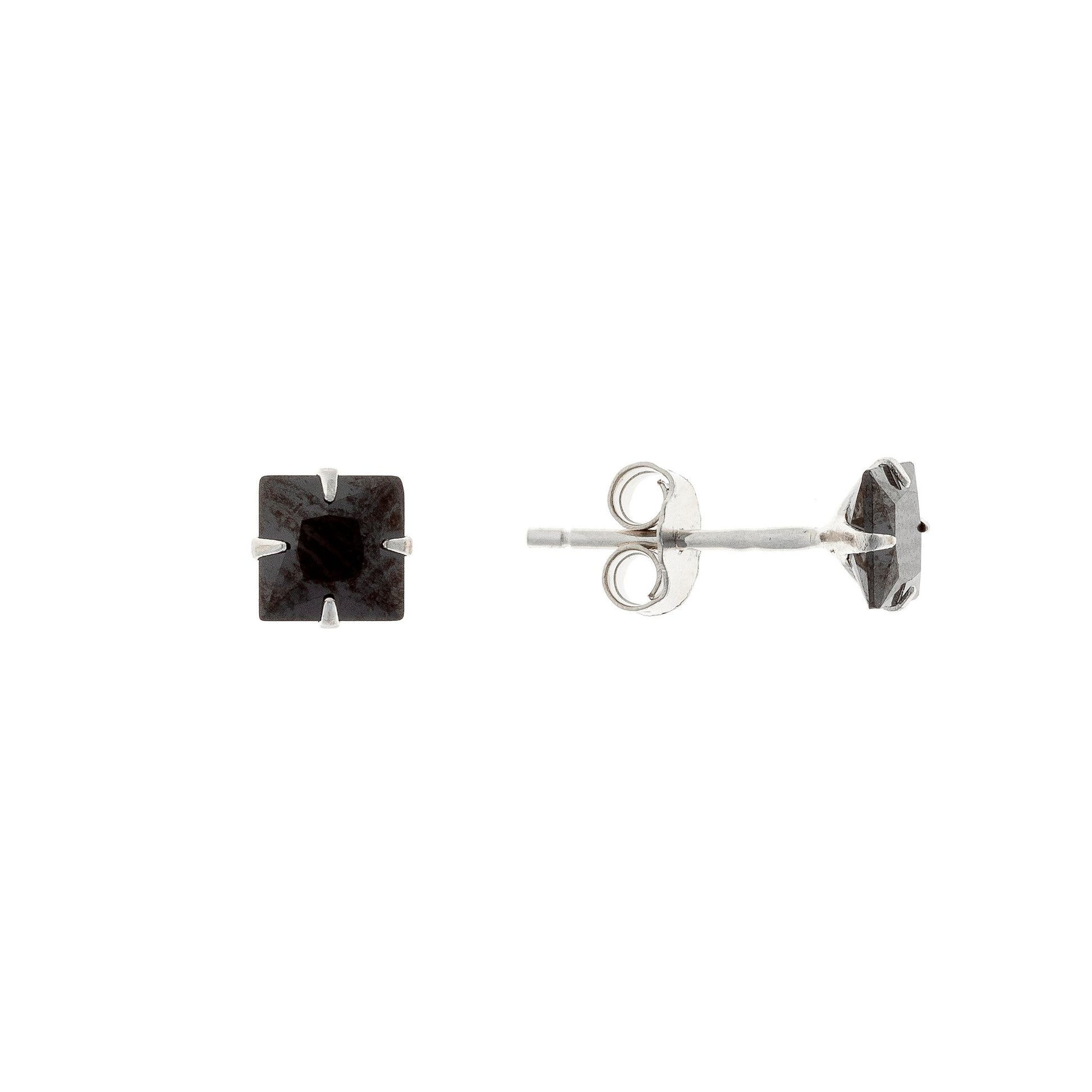 Sidabriniai rodžiuoti 3 - 5 mm juodi kvadratėliai su cirkoniu
