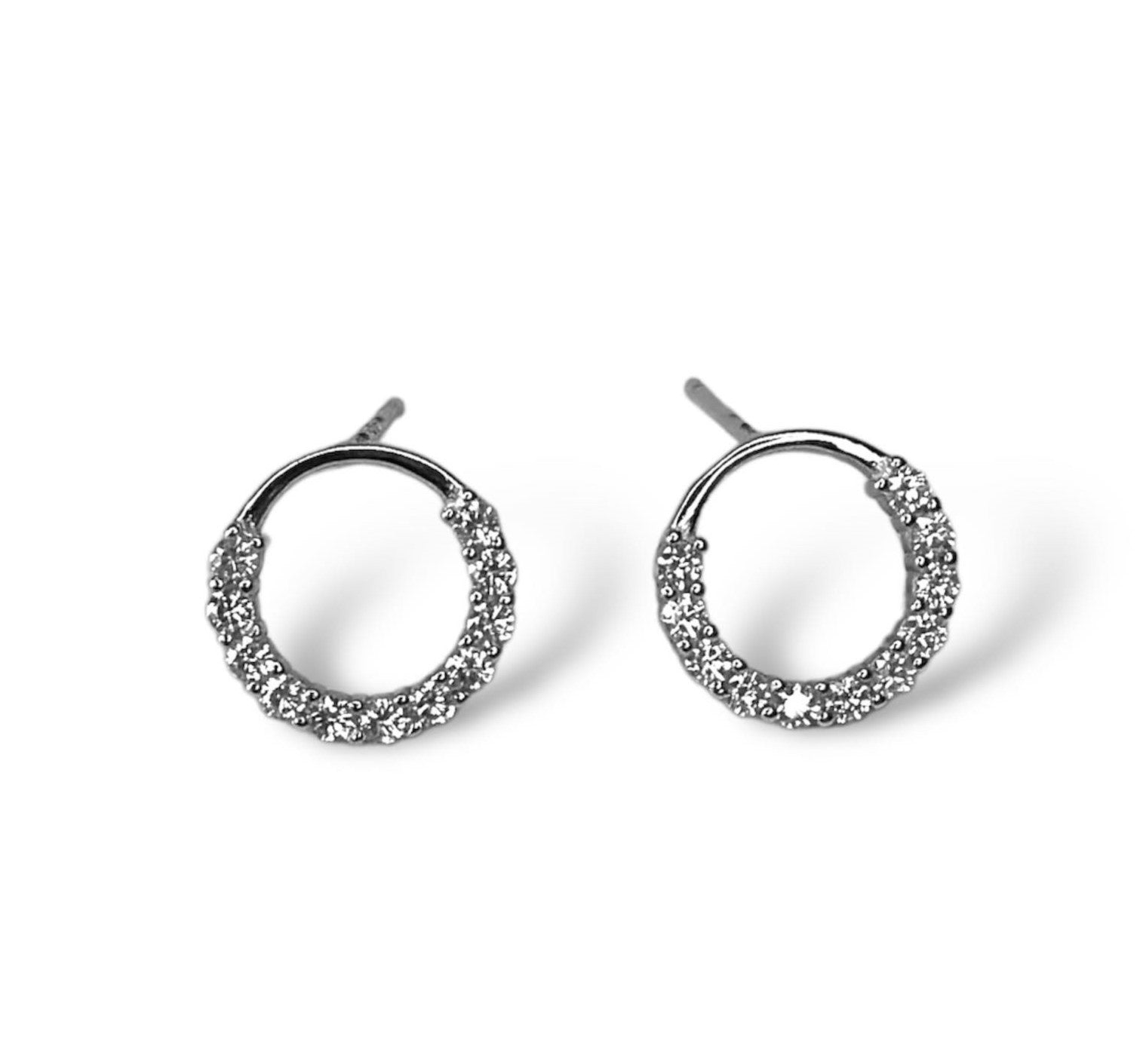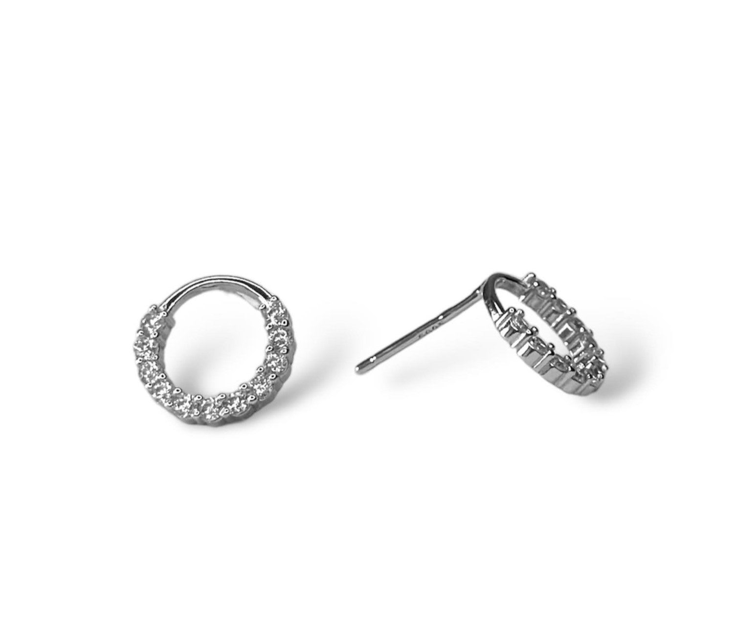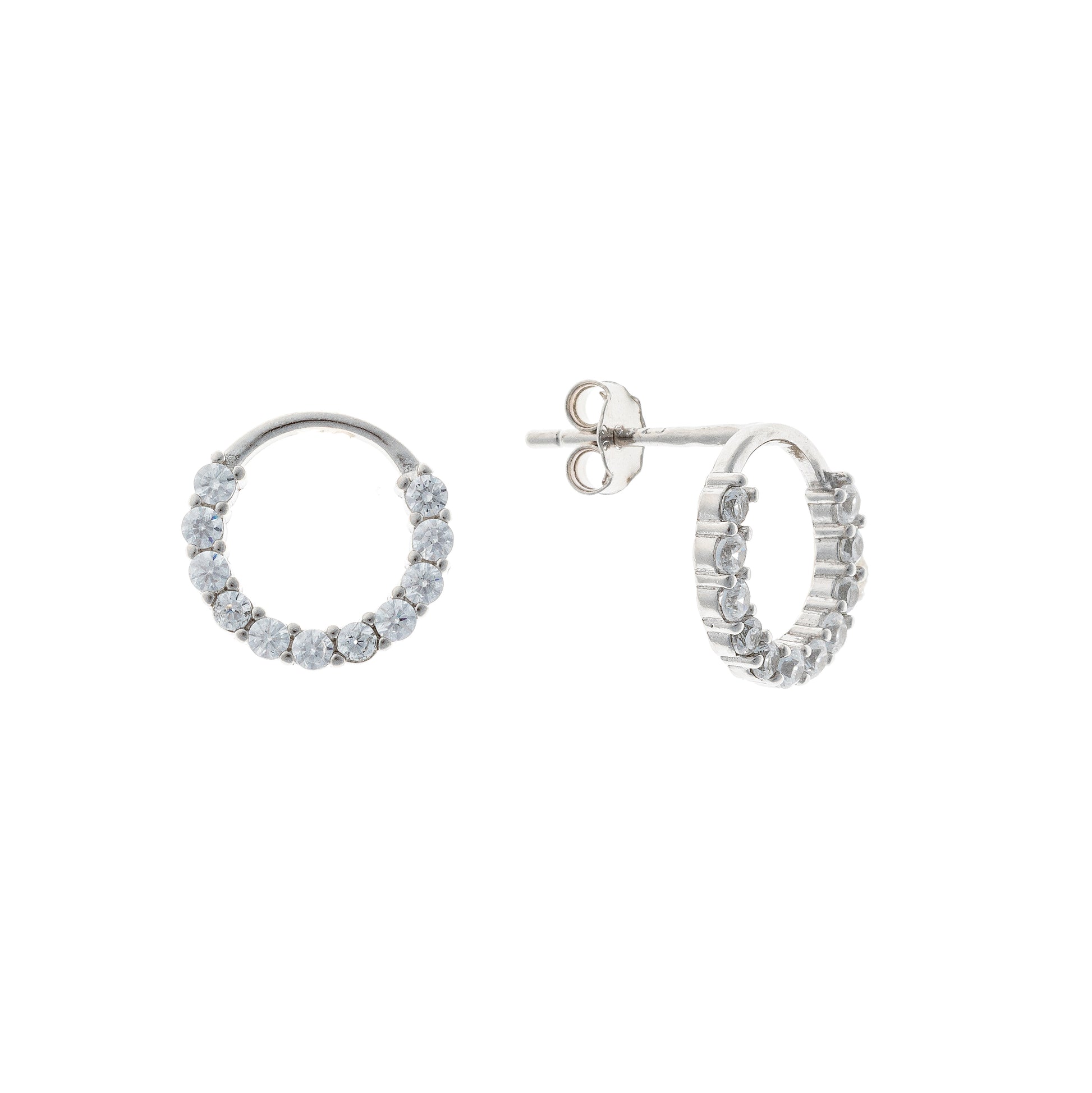 Sidabriniai rodžiuoti apvalūs auskarai su cirkoniais