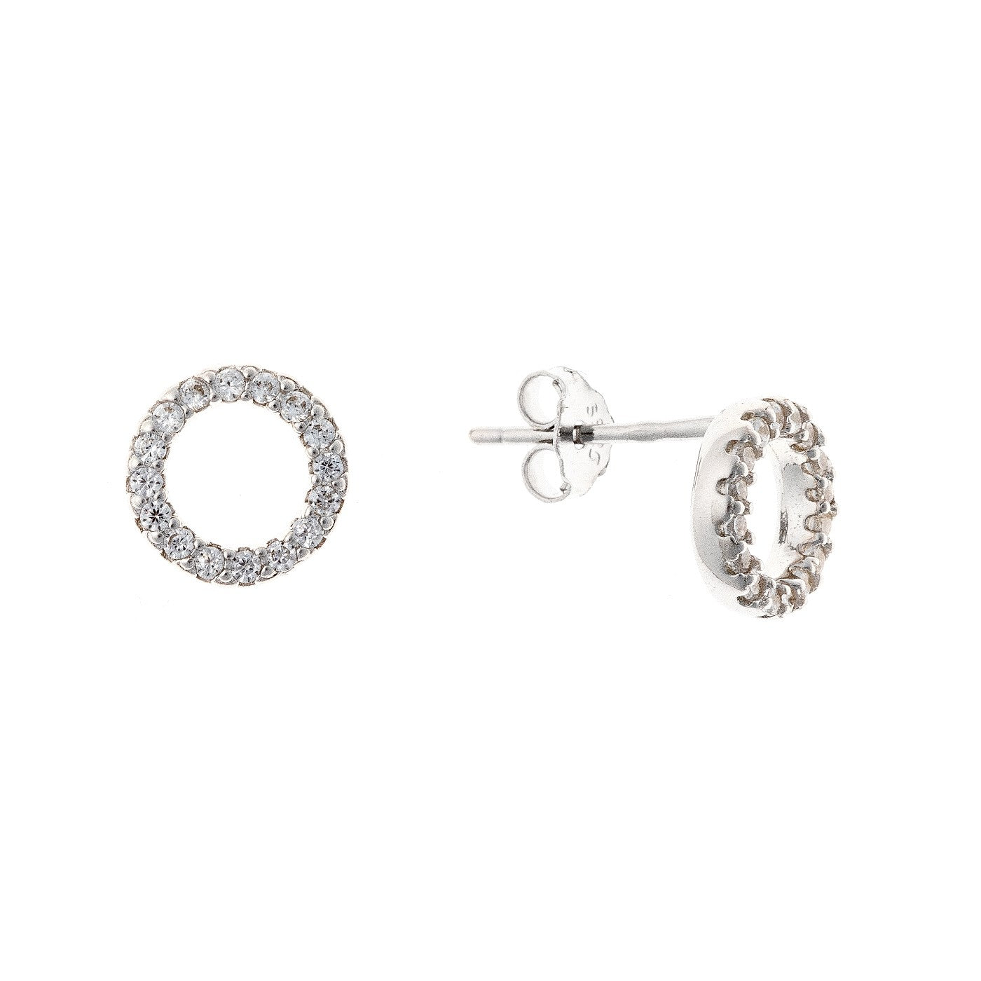 Sidabriniai rodžiuoti apvalūs auskariukai su cirkoniais