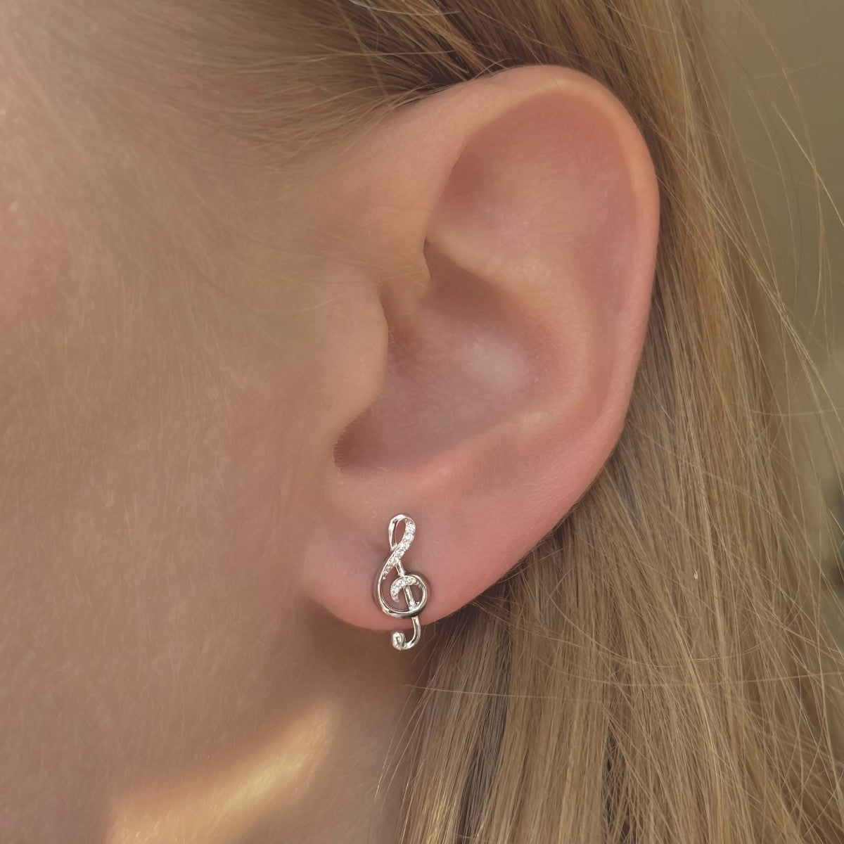 Sidabriniai rodžiuoti auskarai "Smuiko raktas" su cirkoniu