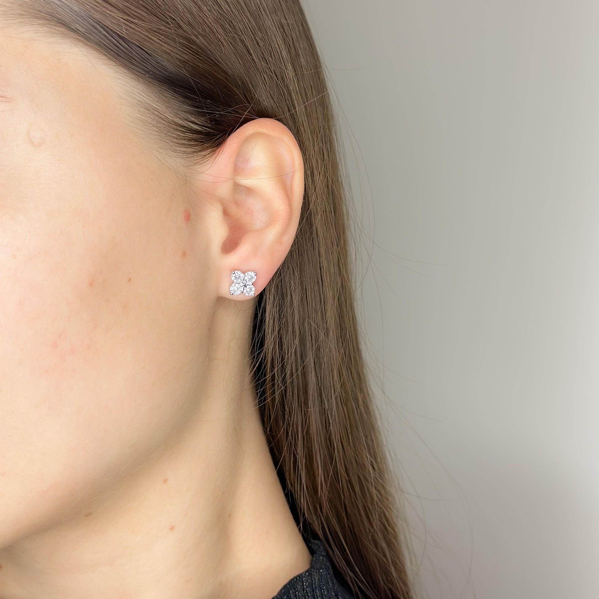 Sidabriniai rodžiuoti auskarai su cirkoniu "Keturlapis dobilas"
